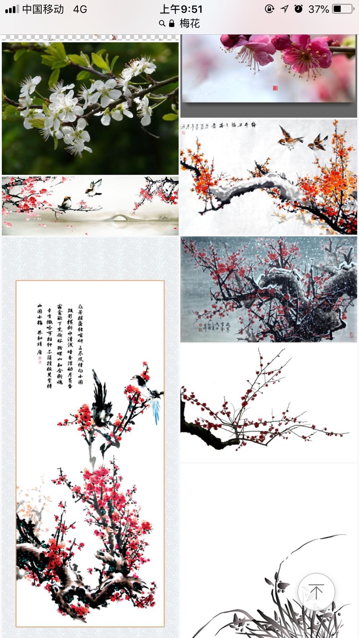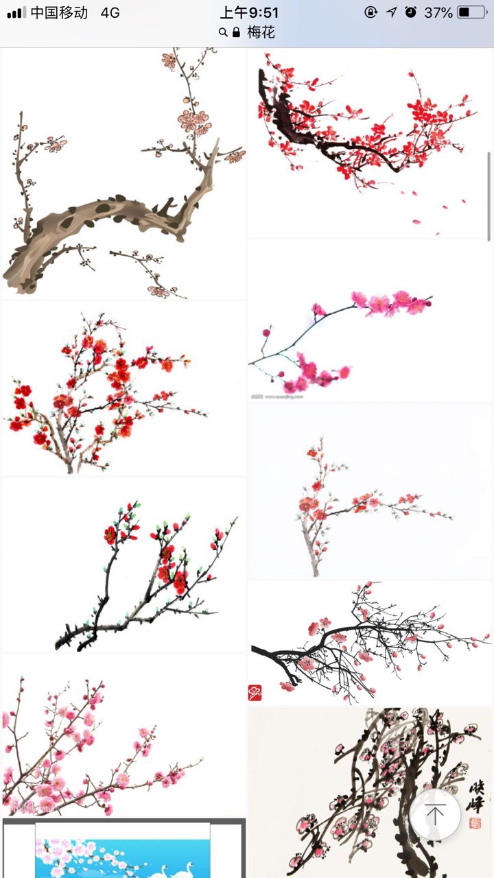 梅(学名:Armeniaca mume Sieb.):小乔木,稀灌木,高4-10米;树皮浅灰色或带绿色,平滑;小枝绿色,光滑无毛。叶片卵形或椭圆形,叶边常具小锐锯齿,灰绿色