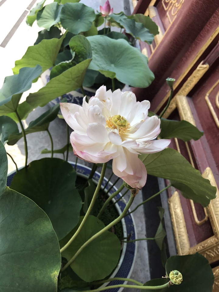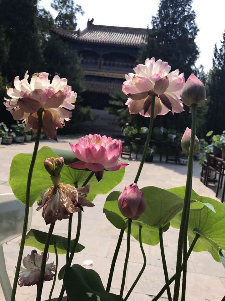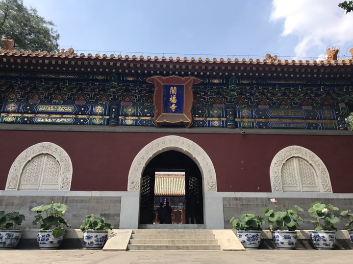 关于北海总感觉有好多的话儿要讲,可真谈到它了却又不知道说些什么好。说到荷花,不光室外,室内也有好多。 室内主要集中在阐福寺,有各种花色各种品种不过花开的都差不多了。阐福寺在北海北岸,五龙亭之北。始建于乾隆十一年(1746年),为太素殿旧址。清孝庄皇后死后曾在此祭奠,乾隆尊生母之愿,下令改为喇嘛庙,赐名阐福寺,其规制仿河北正定隆兴寺。清末,只存“极乐世界殿”南海普陀山一绝。1949年以后,残破不堪的佛山被拆除,1993年,恢复殿内须弥山佛像。所存的阐福寺和万佛楼遗址已被辟为“北海植物园”,万佛楼石碑被移至小西天南侧牌楼外。