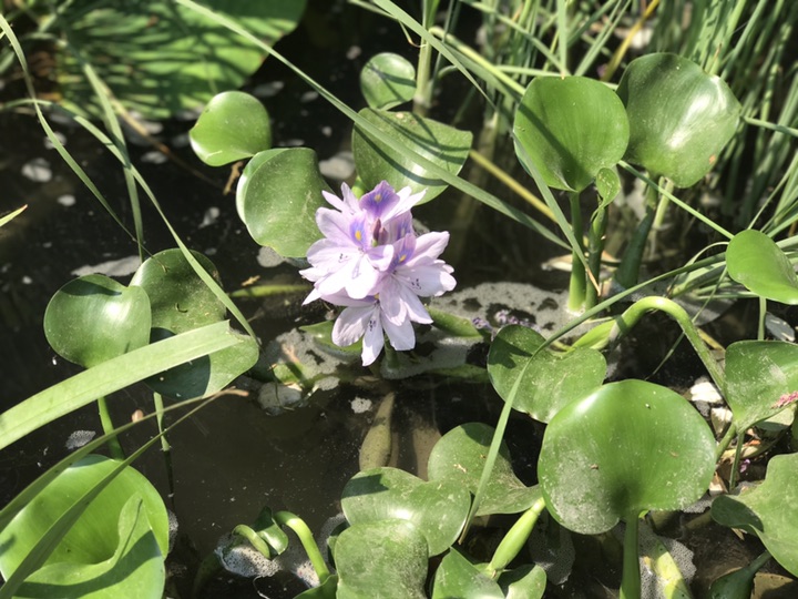 水葫芦又名凤眼莲(学名:Eichhornia crassipes)是一种原产于南美洲亚马逊河流域属于雨久花科凤眼蓝属的一种漂浮性水生植物。亦被称为凤眼莲、浮水莲花、水浮莲、布袋莲、水芋仔。凤眼蓝在水中漂浮,叶直立光滑,根在水中,呈须状,叶柄中空膨大如同“葫芦”,因此可以漂浮水面,花为蓝紫色。