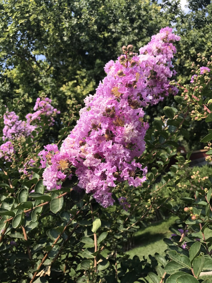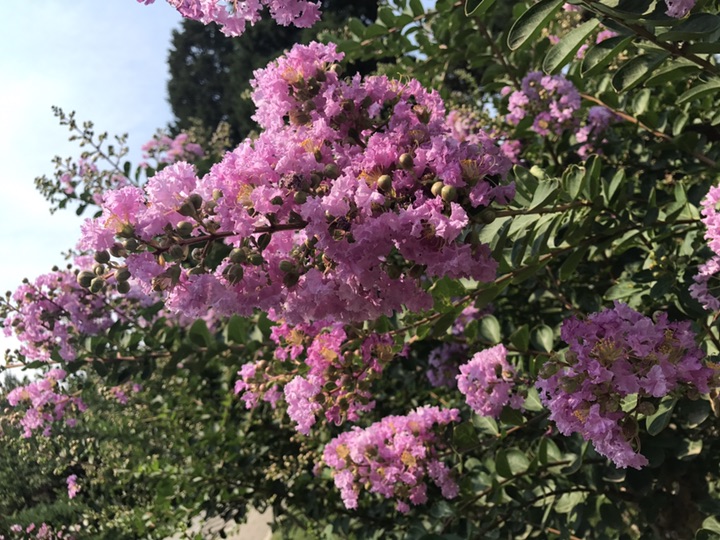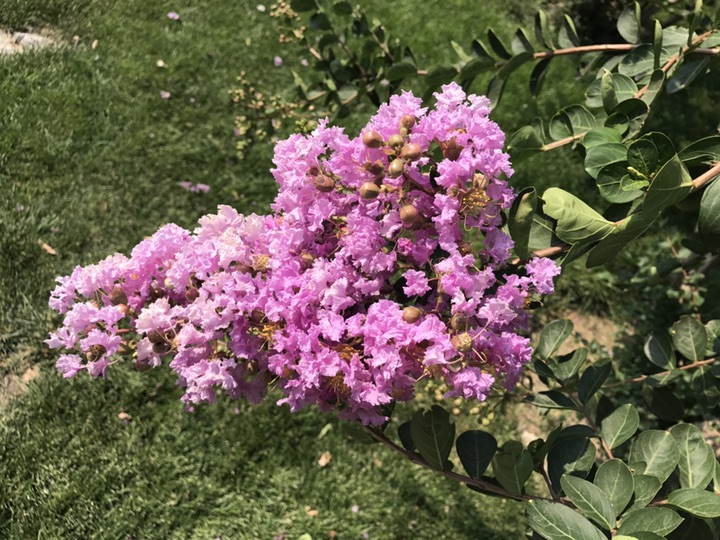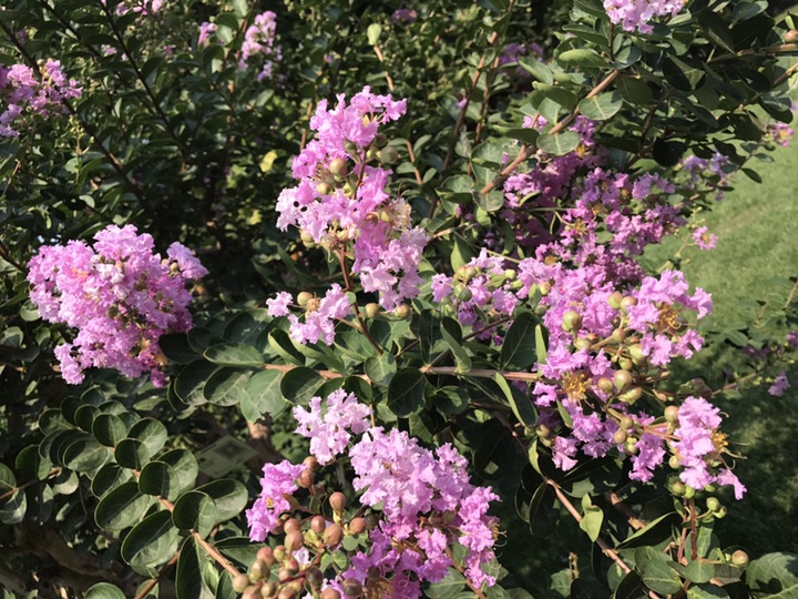 不觉间,紫薇已到了盛花期。只要你愿意出去走走,无论是路边还是各处公园都很容易看到它的身影。紫色是最常见的花色,当然也有其他的颜色