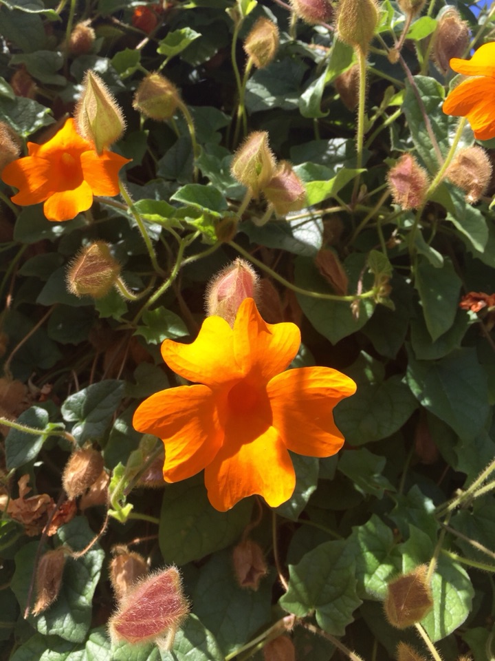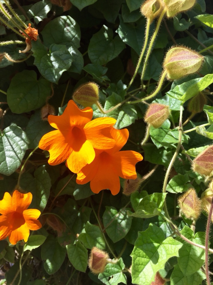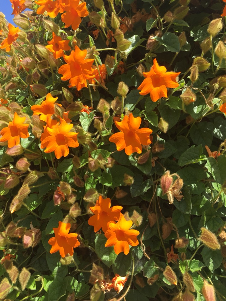 普通名称为Orange Clock Vine 原生地非洲东部 多年生草本、藤蔓植物 在San Diego Botanic Garden里看到的 不知中文名是什么?查了半天没找到...
