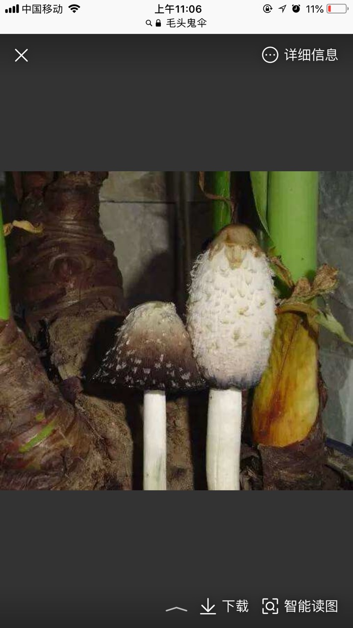 毛头鬼伞(又名鸡腿菇),是我国北方春末、夏秋雨后发生的一种野生食用菌。味道鲜美,营养丰富,且有独特的医疗保健功效。是继香菇、蘑菇、草菇、平菇、金针菇等菌类之后的又一新兴品种,集营养、保健和食疗三性为一体。随着人们生活水平的提高,它的营养和保健价值会越来越受到社会大众的重视,发展潜力很大。春至秋季在田野、林缘、道旁、公园内生长,雨季可甚至在毛屋顶上生长。此菌有时生长在栽培草菇的堆积物上,与草菇争养分,甚至抑制其菌丝的生长