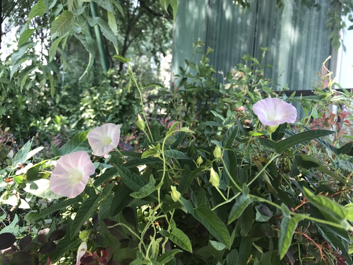 总以为它的花期老早就过了的,却不曾想现在还能看到它。零星的几朵粉白色的小花不起眼的在路边的绿化带绽放,静默的,淡然的想必是不足以让路边的行人停下匆匆的脚步吧。在我这儿却是个例外,驻足围观了许久,想找到更多一点儿的花花,想给每一朵花花都留下一个特写。她旁若无人的开,我旁若无人的拍……