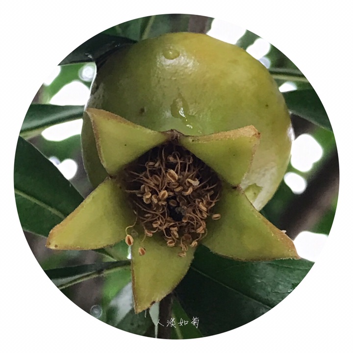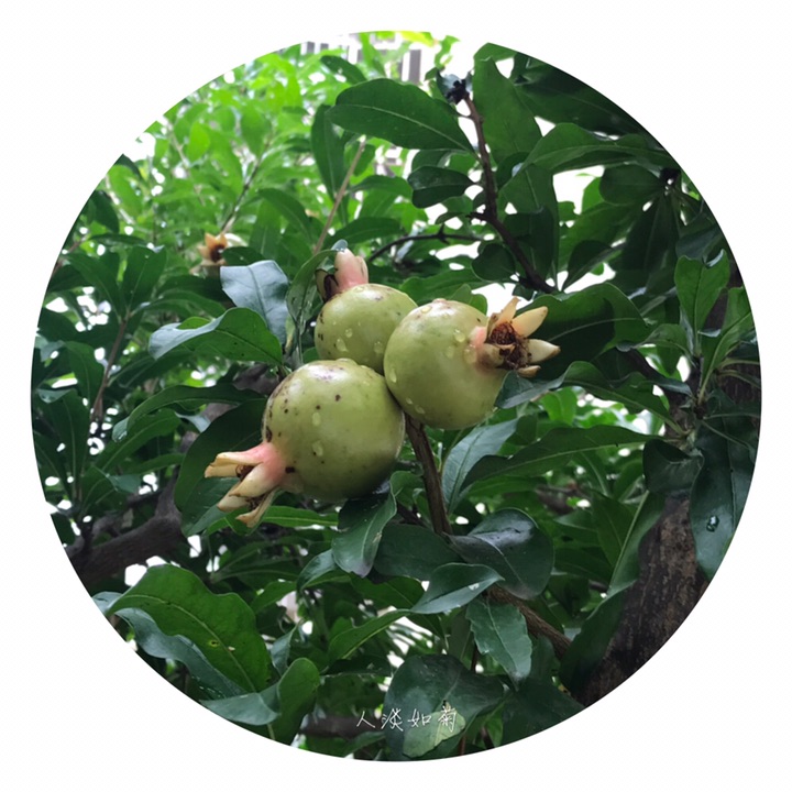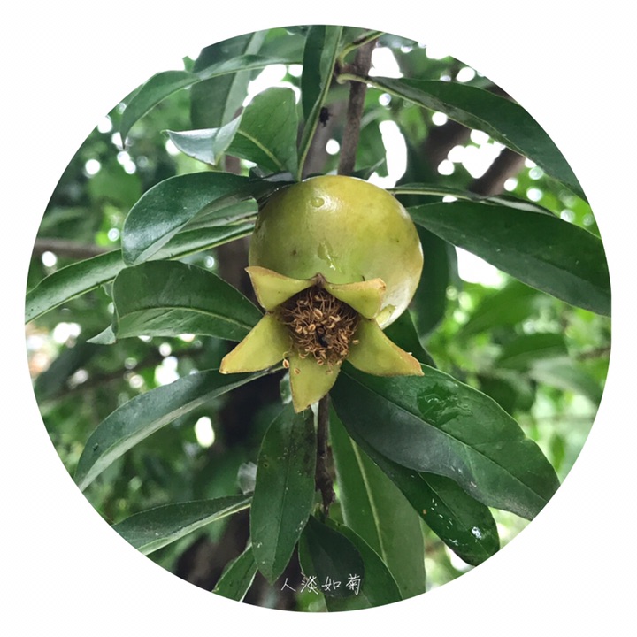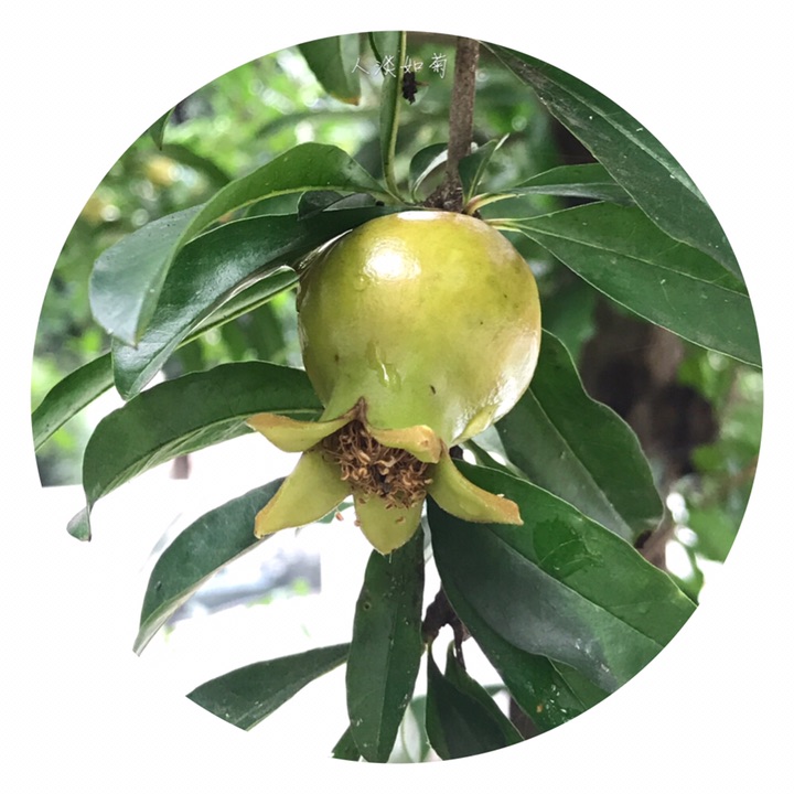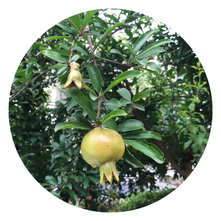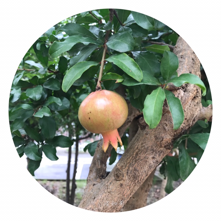 石榴(拉丁名:Punica granatum L.)别称安石榴、山力叶、丹若、若榴木、金罂、金庞、涂林 、天浆。为石榴科石榴属落叶乔木或灌木;单叶,通常对生或簇生,无托叶。花顶生或近顶生,单生或几朵簇生或组成聚伞花序,近钟形,裂片5-9,花瓣5-9,多皱褶,覆瓦状排列;胚珠多数。浆果球形,顶端有宿存花萼裂片,果皮厚;种子多数,浆果近球形,果熟期9-10月。