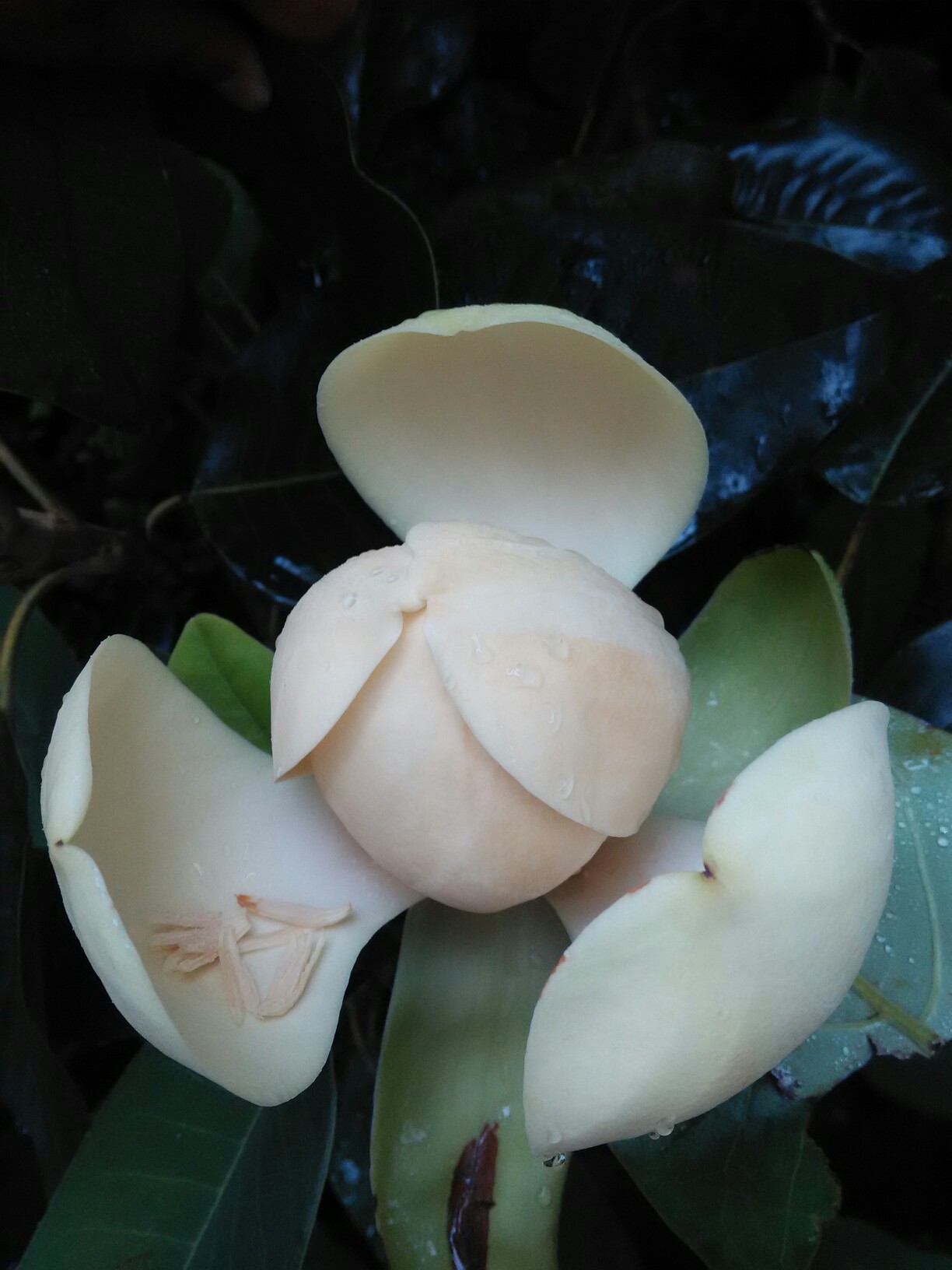 山玉兰,漫长孕育,短暂绚烂,夜雨后芬芳落英。