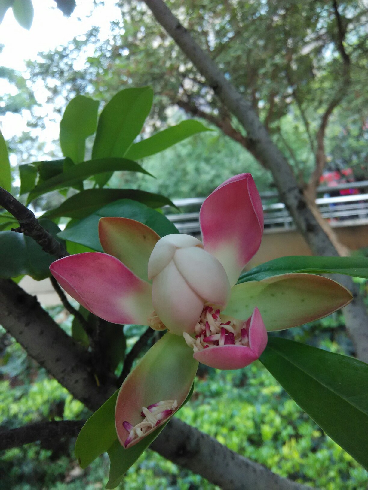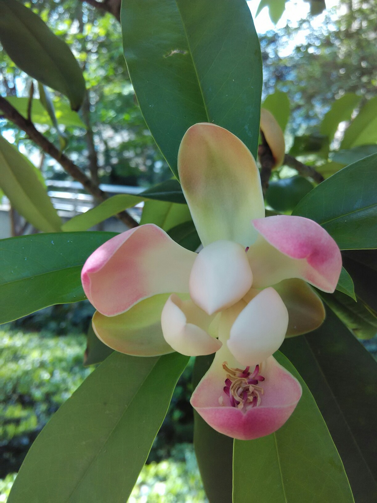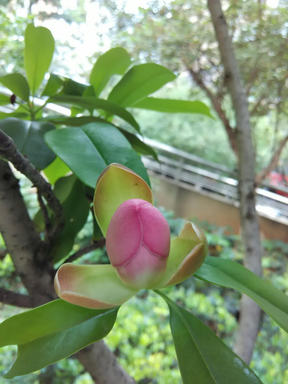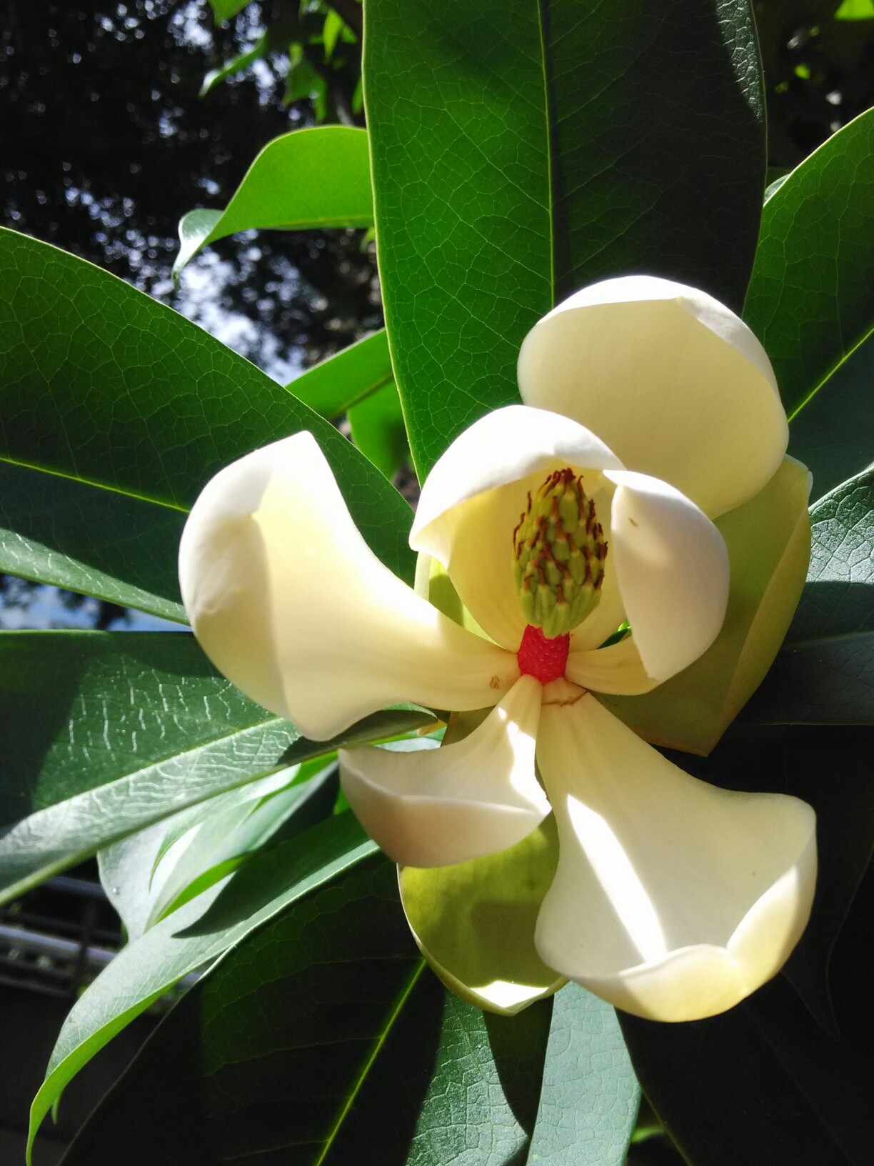 荷花玉兰,俏立枝头,蜂蝶飞舞。