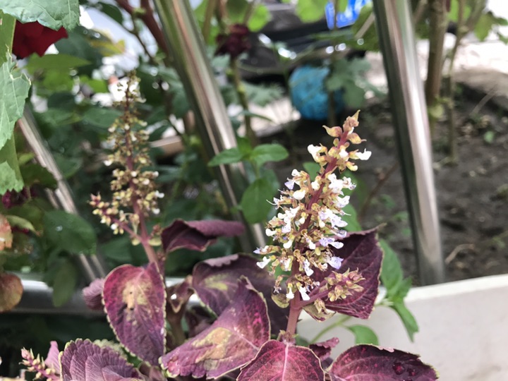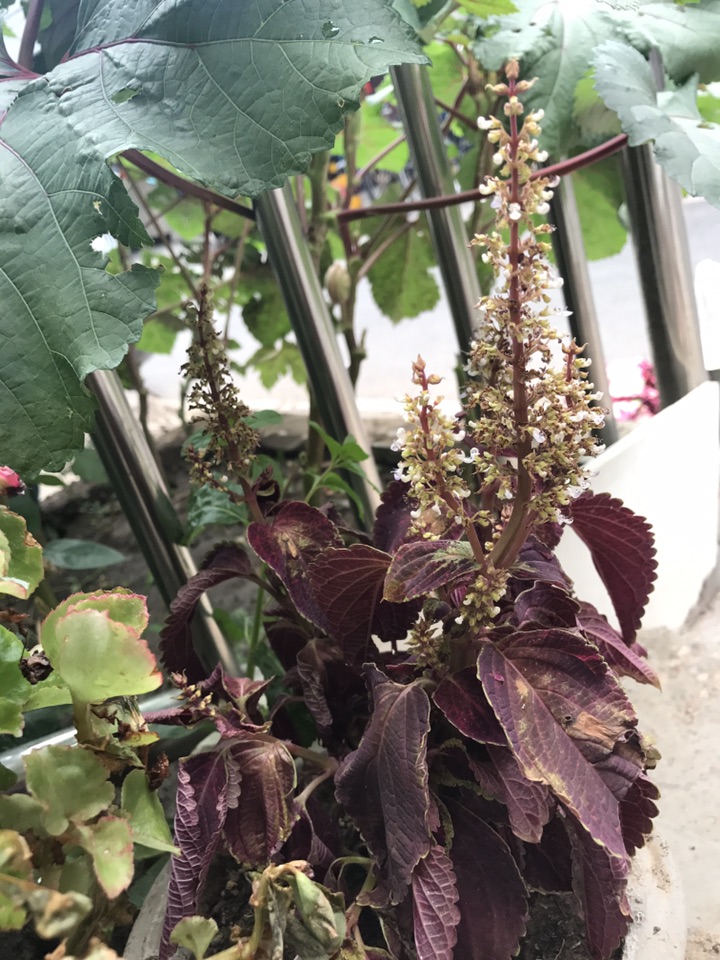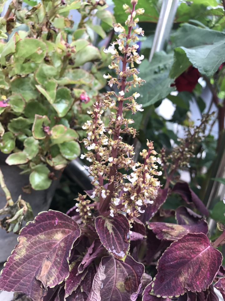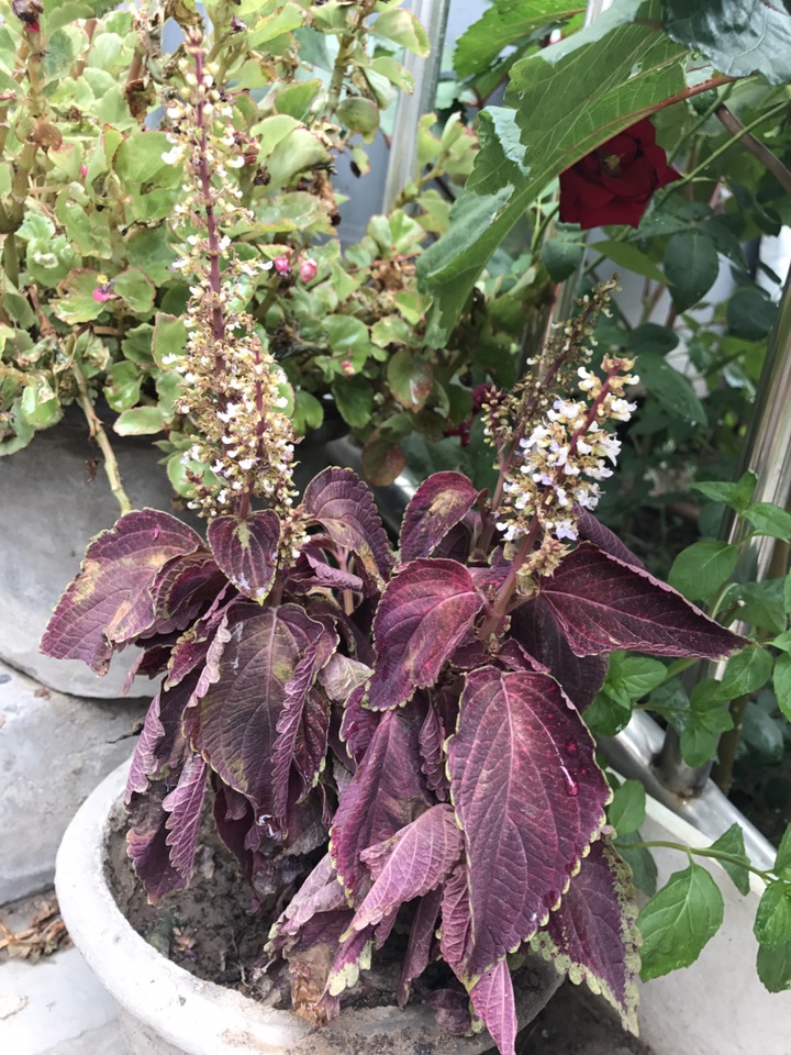 烈日下炙烤的结果吧,几盆五彩苏叶子都卷来起来,叶片看着也是毫无生气的耷拉着,细看更有烧焦的意味。花儿开的也是蔫蔫的。挑一个早晨再去看它吧,相信叶片会更舒展很多!