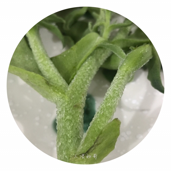 冰叶日中花(学名:Mesembryanthemum crystallinum Linn.)别称冰草、冰菜、冰花。是番杏科、日中花属的一年生或二年生草本。茎匍匐,叶互生,扁平,肉质,卵形或长匙形,紧抱茎,有发亮颗粒。花单个腋生,几无花梗;花瓣多数,比萼片长,花白色或浅玫瑰红色,果实为蒴果。