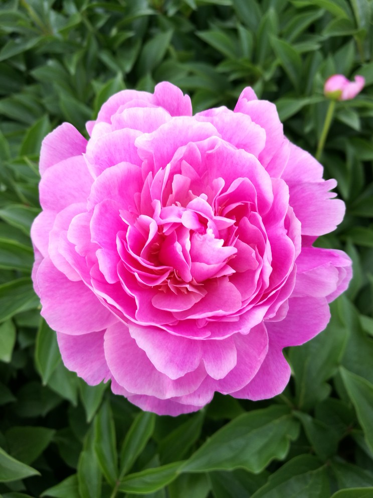 这是一个重瓣的芍药品种。这种花形大家是不是很熟悉?如果不看叶子,我感觉我是很难认出这是芍药的。毕竟很多重瓣月季、牡丹和山茶也是差不多的样子。注意见不到雌、雄蕊。
