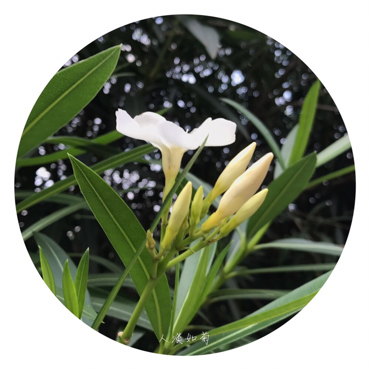 白花夹竹桃(学名:Nerium indicum)为夹竹桃科、夹竹桃属的植物。常绿直立大灌木,聚伞花序顶生,花萼直立,花白色、单瓣,有香气。花期几乎全年,夏秋为最盛;果期一般在冬春季,栽培很少结果。