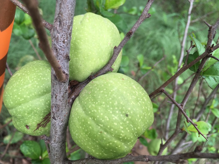 贴梗海棠还结果子?这是我看到花友拍的果子的第一反应。拍了几年的贴梗海棠的花,真不知道她还结果子。于是今天专门去寻果。