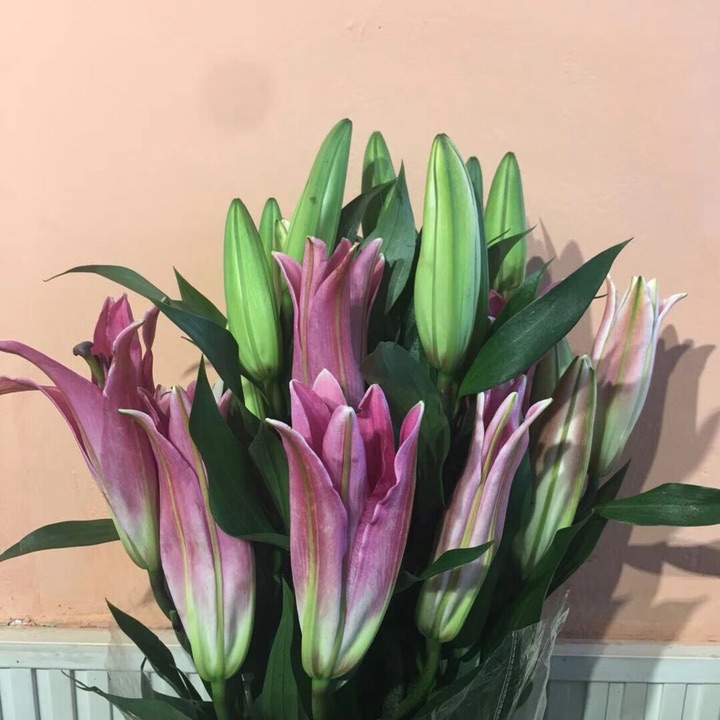 百合,学名(Lilium brownii var. viridulum Baker)又名强蜀、番韭、山丹、倒仙、重迈、中庭、摩罗、重箱、中逢花、百合蒜、大师傅蒜、蒜脑薯、夜合花等,是百合科百合属(学名:Lilium)多年生草本球根植物,原产于中国,主要分布在亚洲东部、欧洲、北美洲等北半球温带地区,全球已发现有至少120个品种,其中55种产于中国。近年更有不少经过人工杂交而产生的新品种,如亚洲百合、香水百合、火百合等。鳞茎含丰富淀粉,可食,亦作药用。