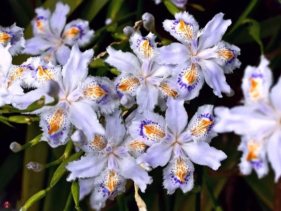 属于饰冠鸢尾的蝴蝶花I.japonica。最外轮花被片有鸡冠状突起。花期四月。图片来源:thegardenofzen.com