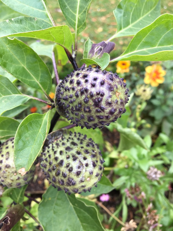 当时觉得那花很奇特,像没有打开的伞,遮遮掩掩的,而且枝上长的球也有些另类,像青涩的悬铃木的球,我竟然不知道它是花蕾还是果实。😂