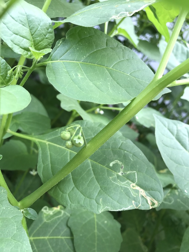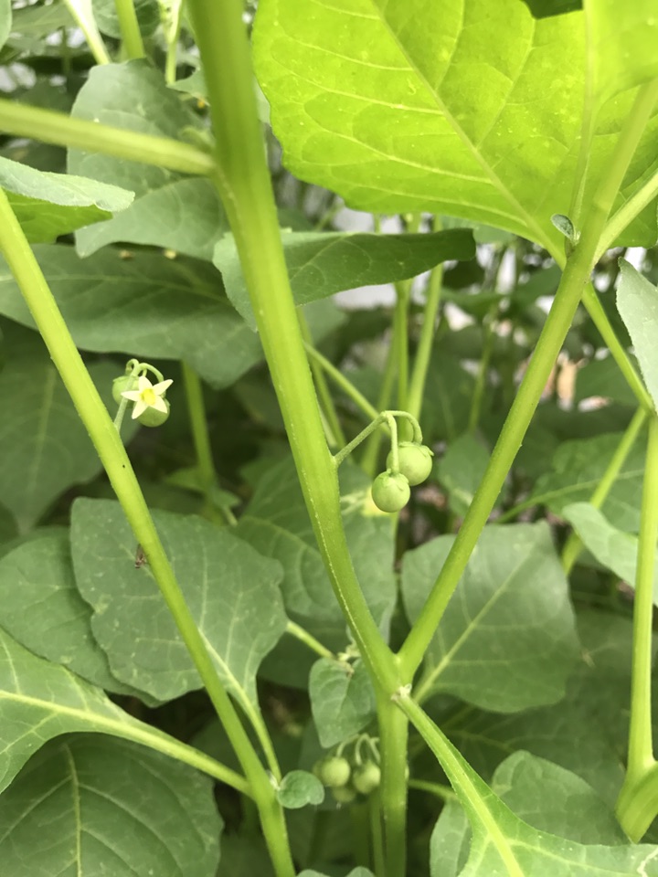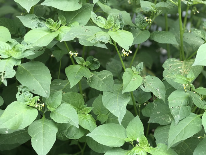 龙葵一年生草本植物,别称黑星星、野海椒、石海椒、野伞子,全草高30-120厘米;茎直立,多分枝;卵形或心型叶子互生,近全缘;夏季开白色小花,4-10朵成聚伞花序;球形浆果,成熟后为黑紫色。浆果和叶子均可食用,但叶子含有大量生物碱,须经煮熟后方可解毒。全株入药,可散瘀消肿,清热解毒。