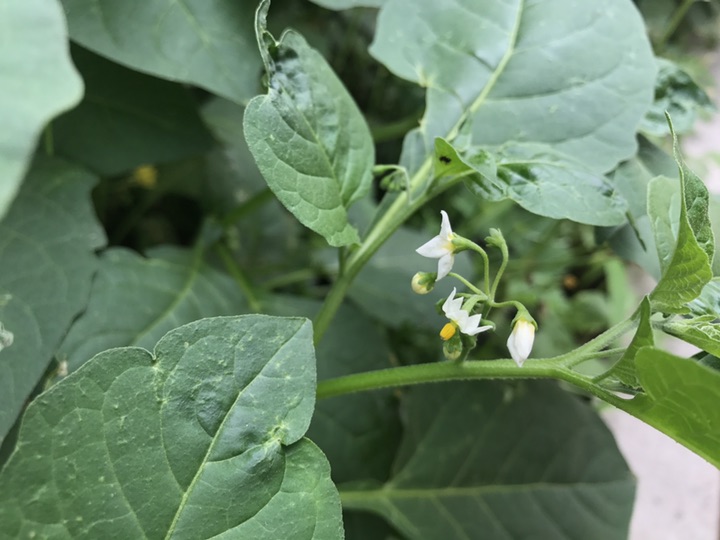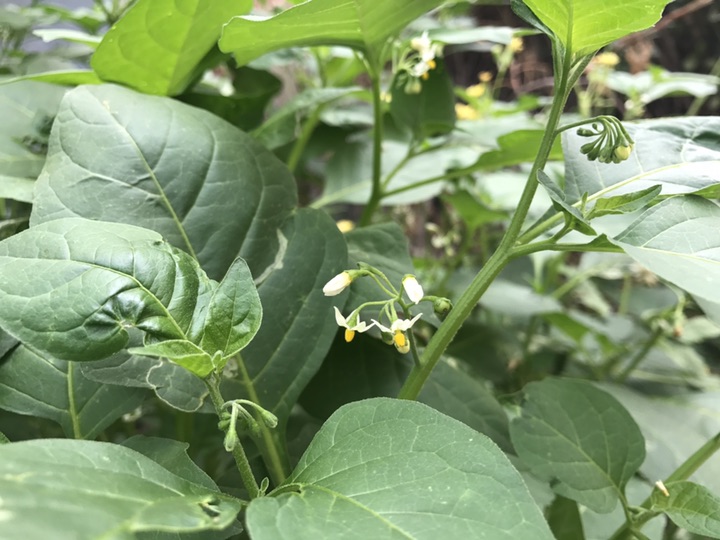 一开始只看到路边是一片绿意盎然,好奇心驱使着我继续往那片绿色而去。才发现原来是龙葵,很难得的在这城市中看到这么一大片的龙葵,前些天也只是偶然的在胡同里看到一两株盆栽的它,想拍个照背景却是一片狼藉,遂作罢了。不想今天居然给我碰上了这么一大片纯粹的没有其他植物乱入的龙葵。好开心!赶忙拿了手机拍拍拍,无奈她花小果小,手机聚焦不行,拍了好多都是糊的好容易挑出来几张也是不甚满意,就凑合着看吧!