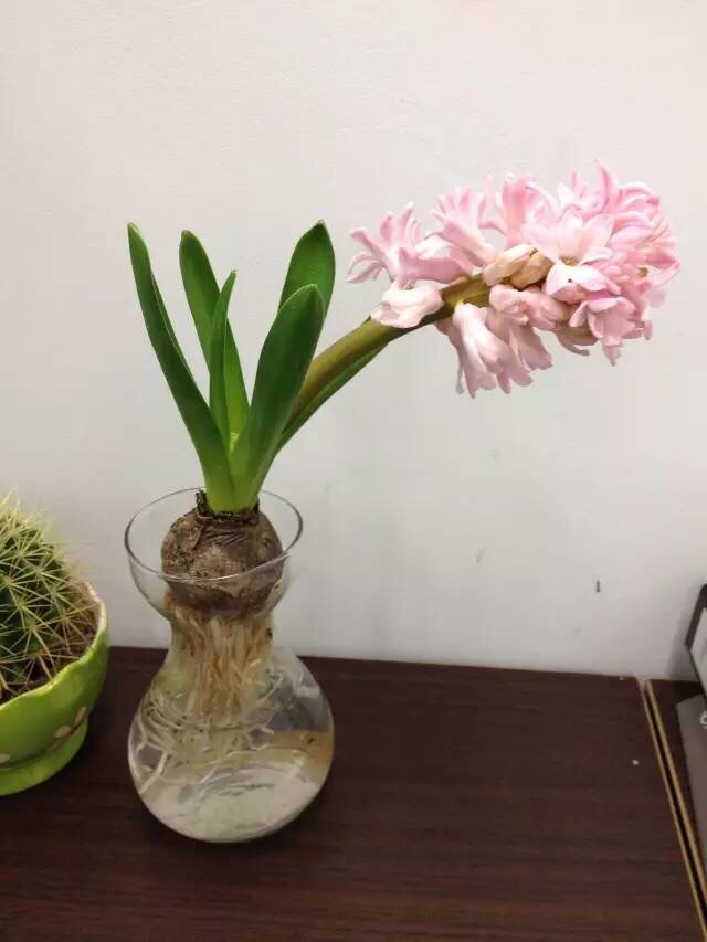 如上图的水培风信子,这种瓶子就比较合适水培球茎植物,水培的时候注意水不要浸泡到球茎。