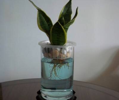 也有很多水培容器是有一个隔层,相当于滤网,根系可以浸泡在水里,根茎就需要一些颗粒石或陶粒固定植株,看上去就更加美观了。