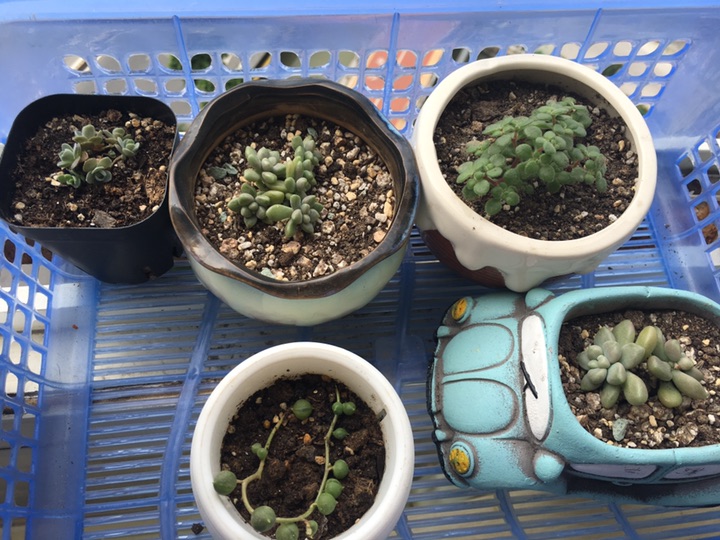 今天一大早在阳台折腾,换盆换土,只希望这些可爱的肉肉能平安度过夏天。