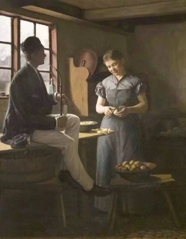 白桦,杜鹃,芦竹,迷迭香,月桂树,缠枝蔷薇,这是油画中青年男女爱情的陪衬。没有这些植物,放到凯旋门下,众目睽睽,诗意有,柔情无。