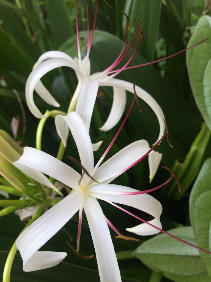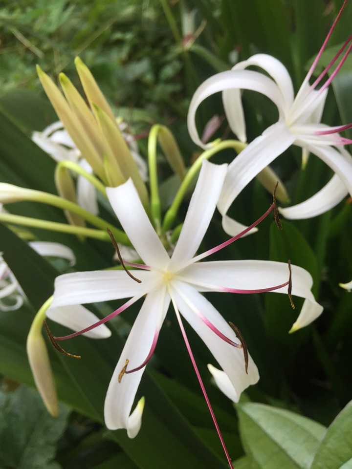 细窄、卷曲、洁白的花瓣,搭配着渐紫的长长花蕊👍🏻