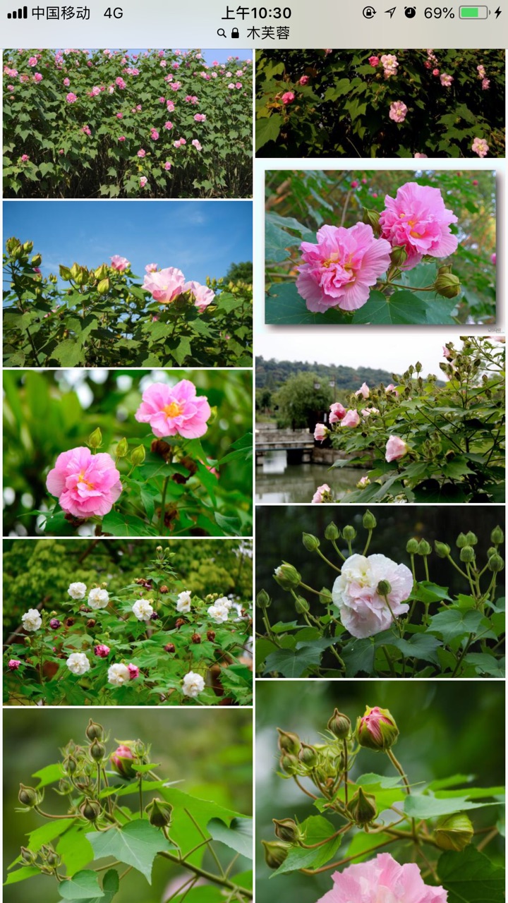 木芙蓉(Hibiscus mutabilis Linn.)又名芙蓉花、拒霜花、木莲、地芙蓉、华木,原产中国。其喜温暖、湿润环境,不耐寒,忌干旱,耐水湿。对土壤要求不高,瘠薄土地亦可生长。为锦葵科、木槿属落叶灌木或小乔木。花于枝端叶腋间单生。花、叶均可入药,有清热解毒,消肿排脓,凉血止血之效。木芙蓉还是成都市市花,其花语为纤细之美,贞操,纯洁。