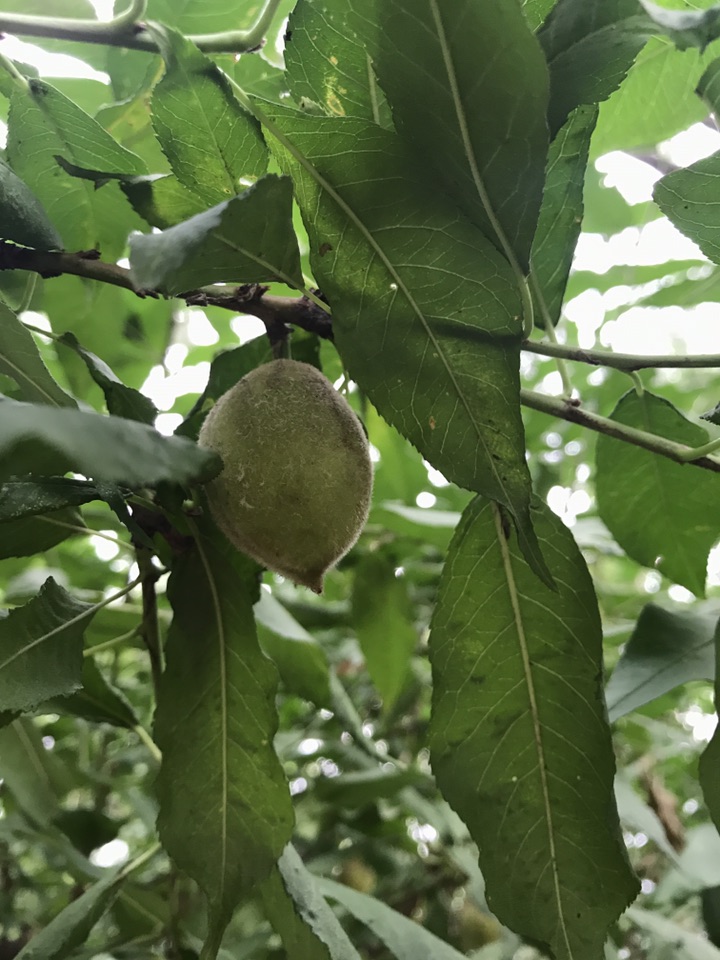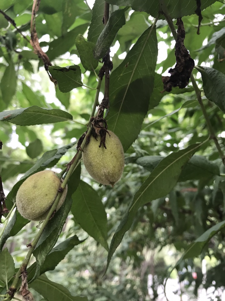 当下便决定来年定要来看看这奇特的花花。心里纳闷这个菊花桃也能结出可食的桃子来吗?它的果子也会是不一样的吗?周六在海淀公园偶然间看到挂牌为菊花桃的几株桃树结了好些个果子,原来也没有哪里不一样嘛。跟我们老家的毛桃是一样一样的。相对于它的花,感觉果子也太稀疏平常了吧!也不知道味道怎么样呢?
