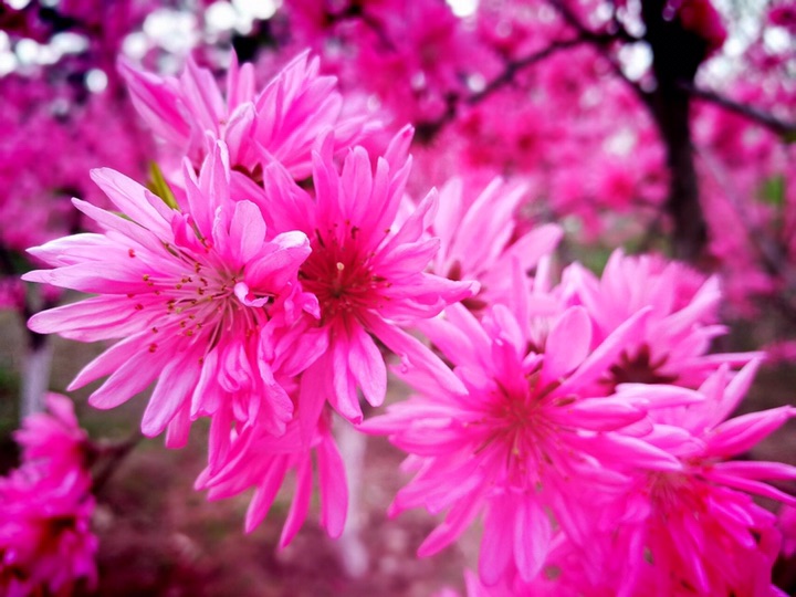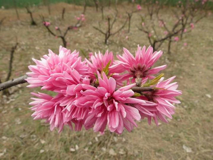 第一次听说此花,是在秋冬季节吧。逛某个公园的时候看到有几棵树挂牌为菊花桃,心里不仅有个疑问,这是开着菊花的桃树吗?回去百度了一下:菊花桃(学名:Prunus persica Chrysanthemoides),属蔷薇目,蔷薇科落叶灌木或小乔木,是从日本引进的桃花新品种。因花型酷似菊花而得名,是观赏桃花中的珍贵品种。花期3至4月,花先于叶开放、或花、叶同放。花后一般不结果。