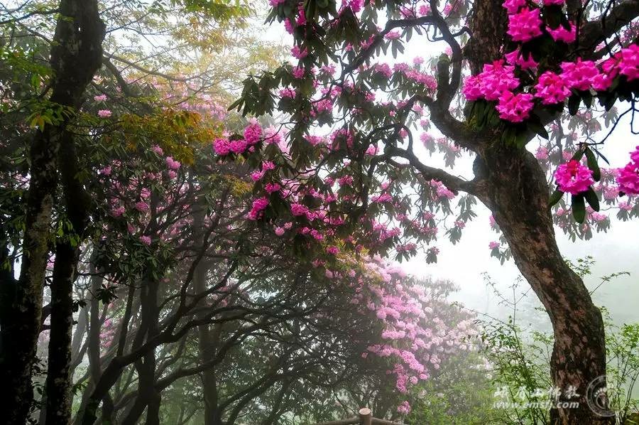 峨眉山杜鹃花品种繁多,色彩各异,千姿百态,从中山段到高山段次第开放。在峨眉山海拔2300——2600米的雷洞坪一带是峨眉山的高山杜鹃保护区,这里的杜鹃花最为集中,也是赏花的最佳地。