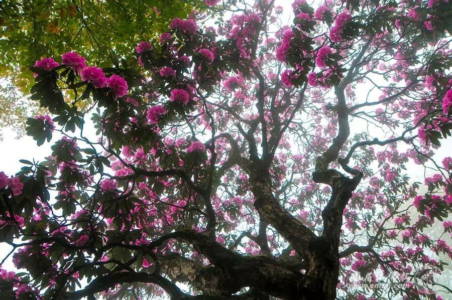 区域内分布有美容杜鹃、山光杜鹃等14种杜鹃,有株高10米的美容杜鹃,有高不盈尺的树生杜鹃,红色、黄的、白的、紫的……,绚丽绽放,汇成鹃海,当然,最摄人心魄的还是开在云海之上金顶悬崖边的“艳丽杜鹃”,祥云在脚下忽聚忽散,杜鹃在身边灿烂地绽放,你会觉得自己仿佛置身于神仙的后花园。