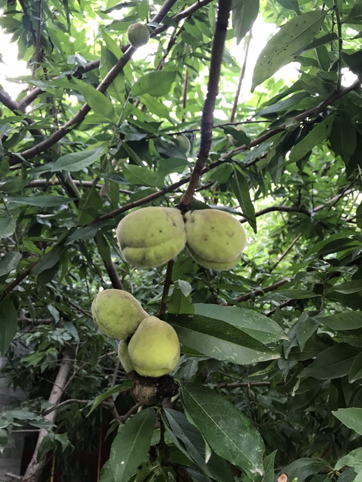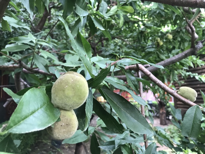 除了小苹果,小院还有两株碧桃。开花的时候让人惊艳过,它的果子却一直被人忽略。很多人说,像碧桃这般观赏性的桃树结的果子并不好吃,去年尝了一颗,在树上摸着就是软软的,摘下把皮一撕,感觉味道还是挺不错的嘛。虽说今年的果子也是稀疏不堪,较去年却还是要多出好几倍呢!老爷爷说,想吃桃子了就过来,今年的桃子管够……