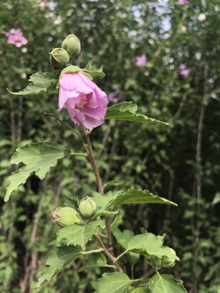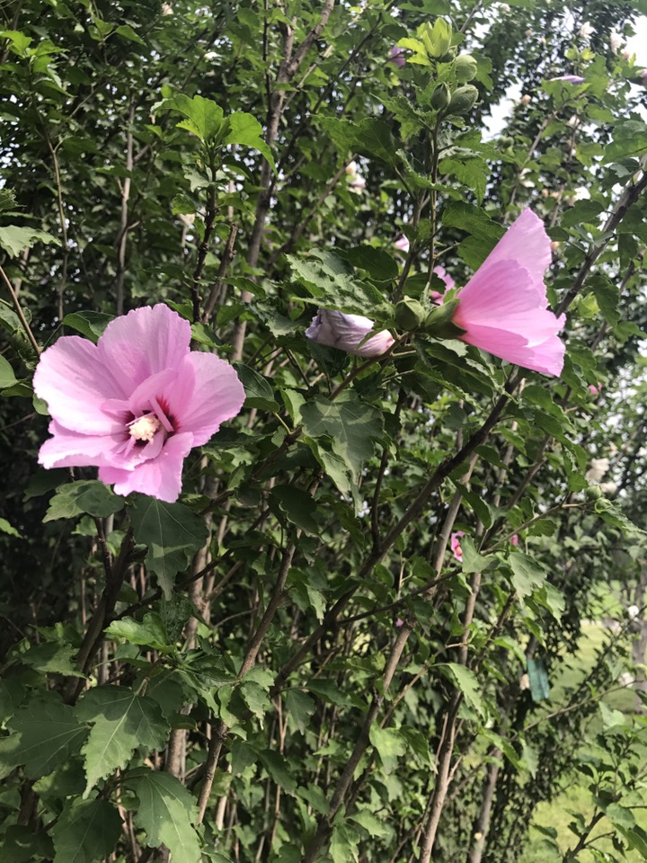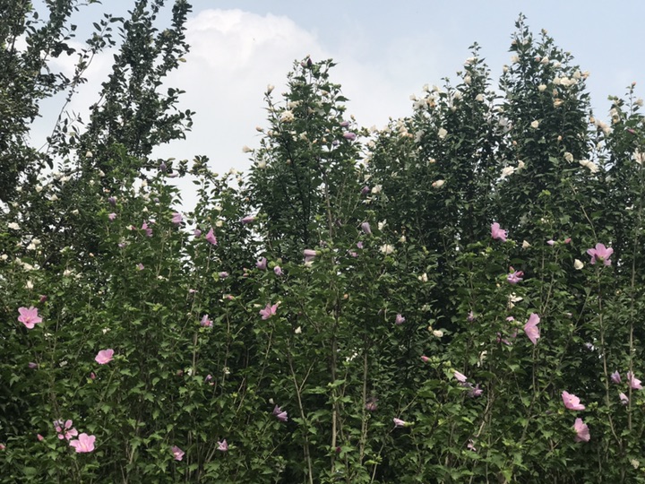 这不知道是第几次遇见她了,可每次总是那么孤零零的一棵立在那里,再搭配上粉粉的颜色柔美的样子略显的有点单薄。这一次看到了这么一片,树形高大花儿纷杂,阳光斜斜的抛过来,草自在,花自在,心里边陡然间柔软起来