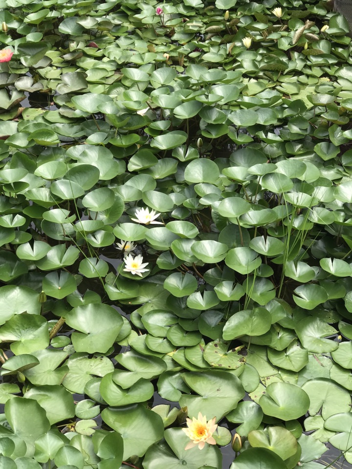 睡莲一到傍晚会把花瓣合起来,这在植物学上叫植物的感性运动,指植物体受到不定向的外界刺激而引起的局部运动。典型的例子就是含羞草,碰它一下,叶片就闭合了。这是受到了触碰而发生的运动,为感震性的感性运动。睡莲则是感光性,光照强弱会影响它。下午的天气将雨未雨,阴沉了好长一段时间,你看最后面那两图睡莲的花基本上都合上了。
