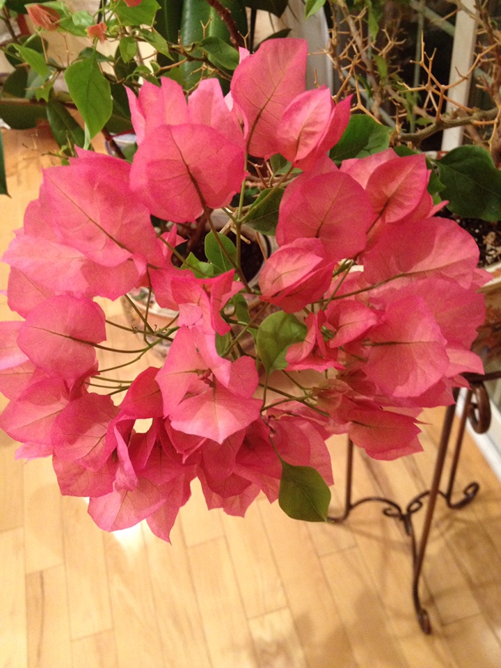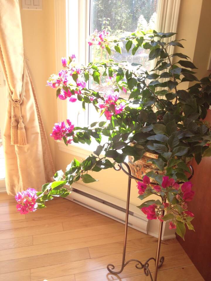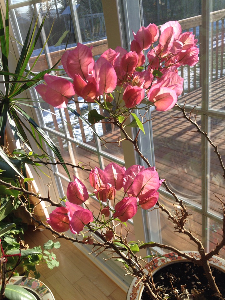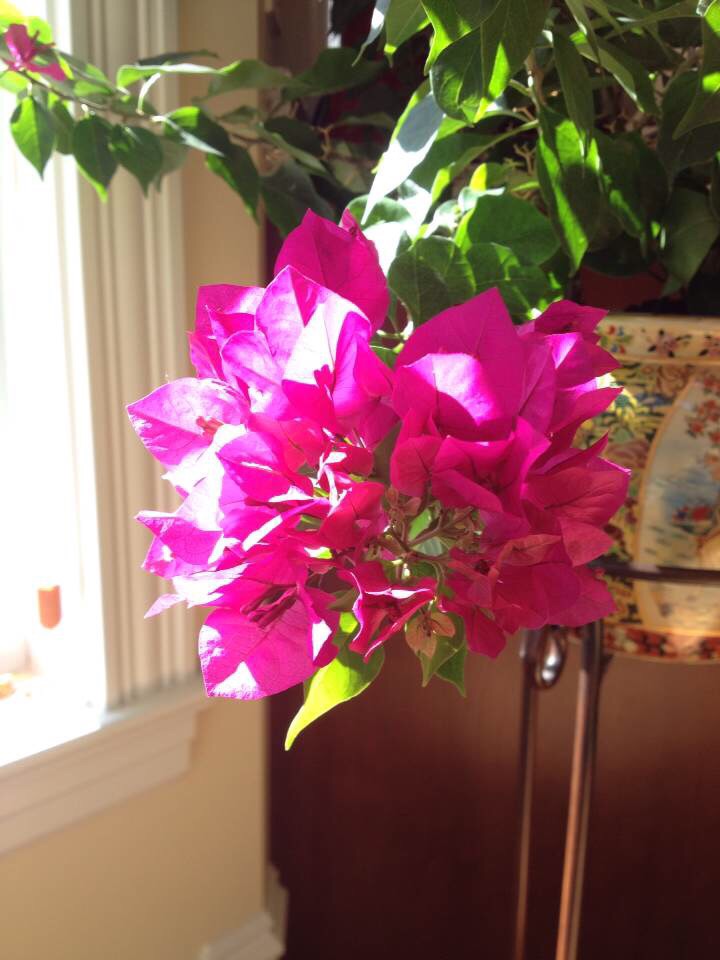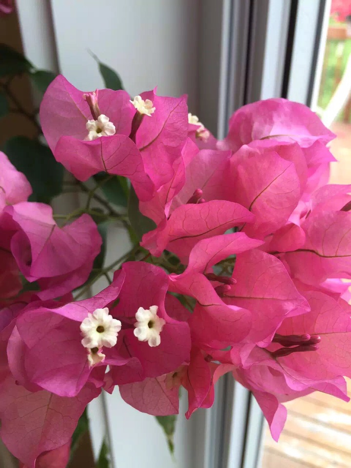 我以前所住的地方属寒冷地带,三角梅是见不着的;后来有当地的花店把这花儿当珍品引进了一批。一发现便迫不及待地搬回家一盆作为室内植物养着,很是开心😊😊