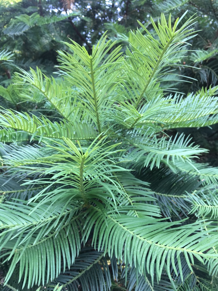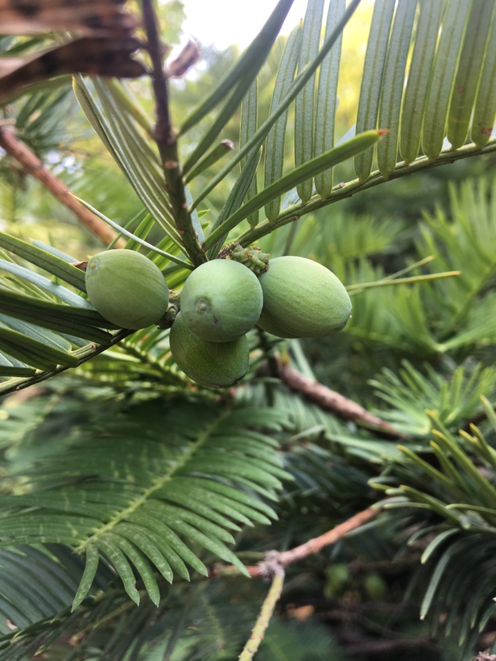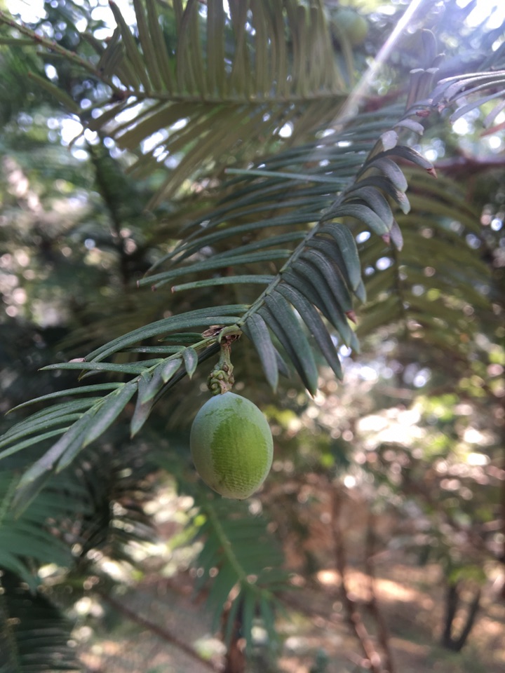 在北京植物园,还有那么一种植物,叶跟水杉相似,果子有葡萄大小,椭圆形,看着也像橄榄,果子和叶子结合起来有一种很别致的感觉。