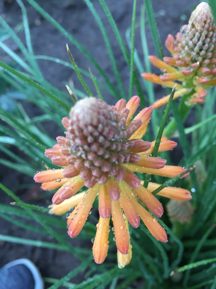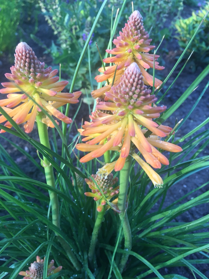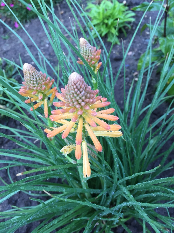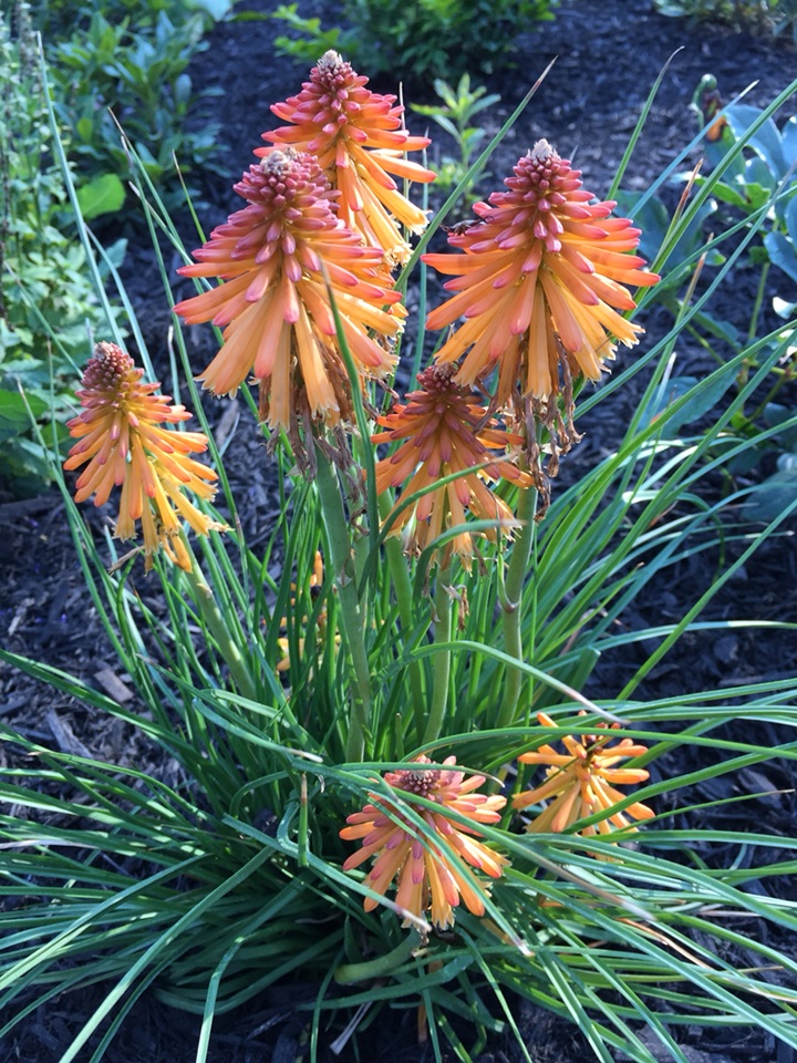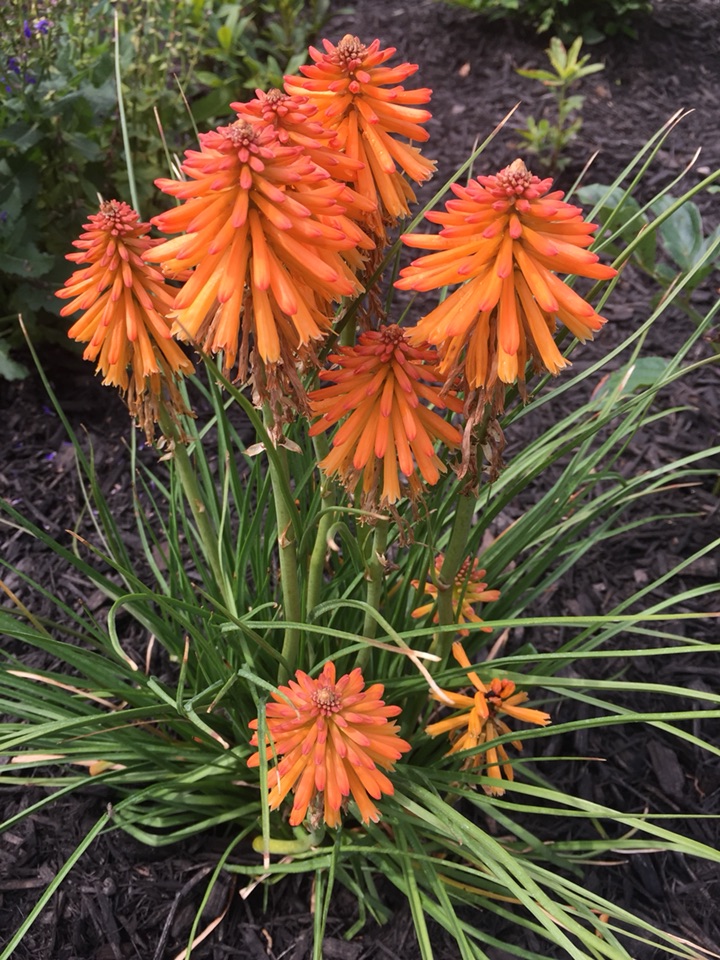 曾在一个植物园里看到过火红颜色的 那可真像是一把把火炬 可惜本地没发现那种颜色的 种了这个橘红色的 也还不错 给花园增添一点儿不一样的感觉