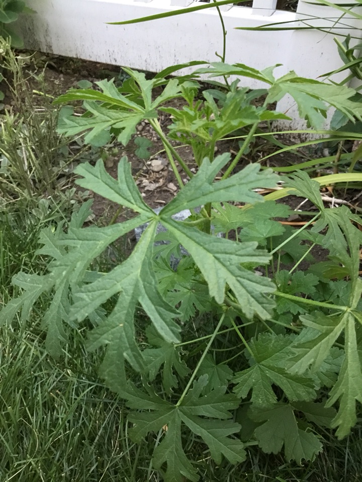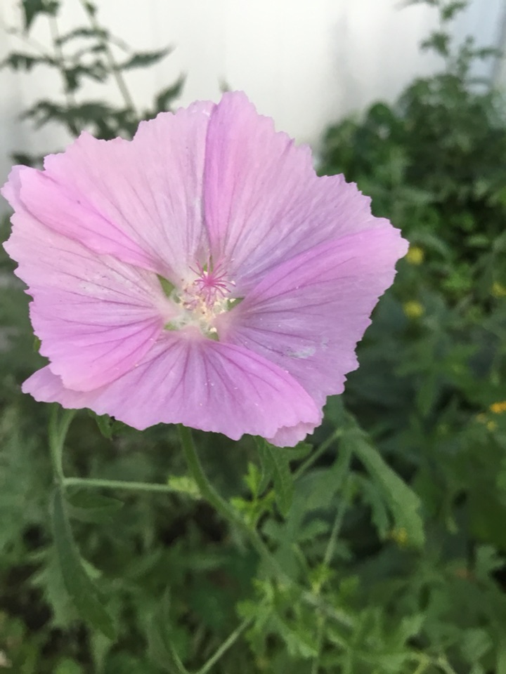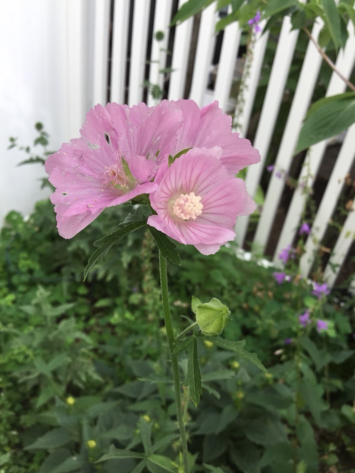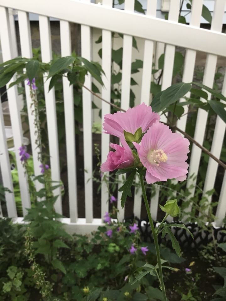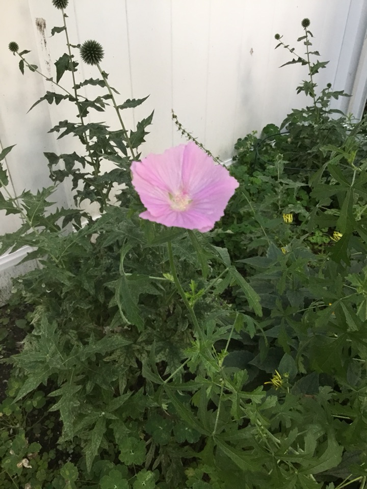 开了几朵粉色的小花,有点像芙蓉葵。但叶子不像。