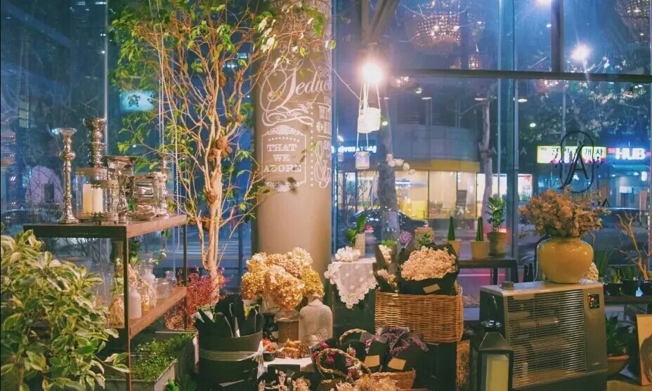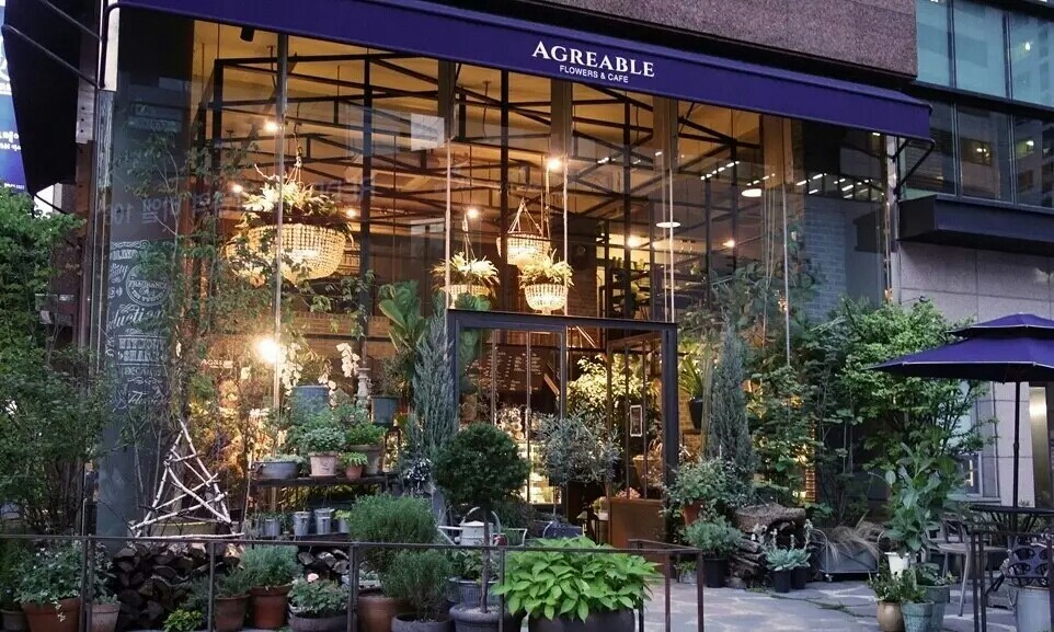 AGREABLE位于首尔繁华区的江南,外表看似植物园,却是一家以花为主题的咖啡厅。