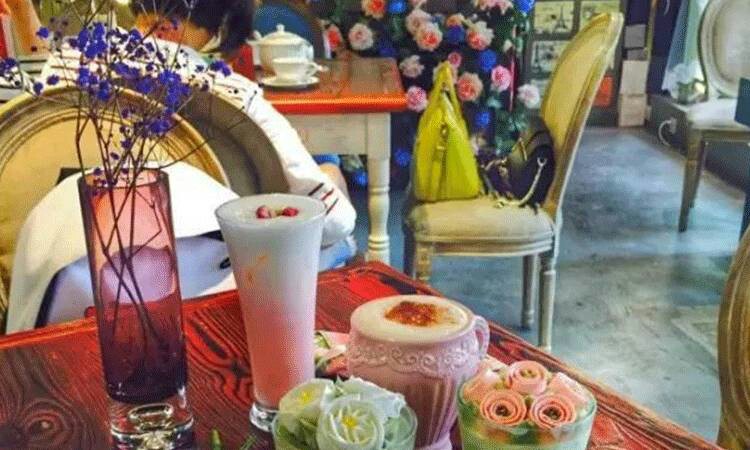 咖啡厅内簇拥着各类鲜花与干花,店内装修优雅舒适,坐在里面不由觉得心旷神怡,仿佛来到了都市里面的“神秘花园”。
