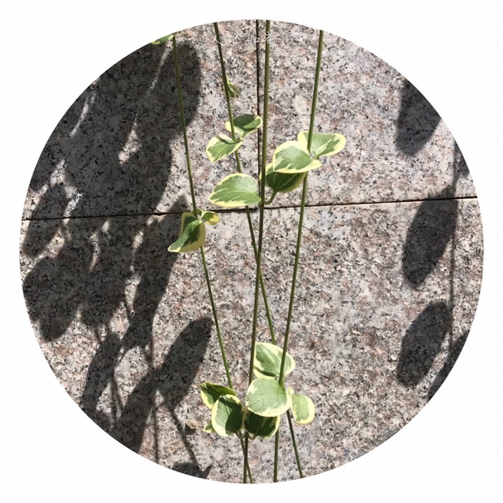 夹竹桃科蔓长春花属蔓性半灌木,茎偃卧,花茎直立。叶椭圆形,边缘白色,有黄白色斑点,长2-6厘米,宽1.5-4厘米,先端急尖,基部下延;侧脉约4对;叶柄长1厘米。花单朵腋生;花梗长4-5厘米;花冠蓝色,花冠筒漏斗状。蓇葖长约5厘米。花期3-5月。是蔓长春花种下的一个品种。
