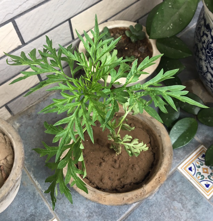 昨天在北京植物园偶遇园丁间苗,捡了一棵看起来还算茁壮的,回到家栽在盆里浇上水,今天早上上面的叶子已经精神起来了,不过下面的叶子还有些蔫儿。