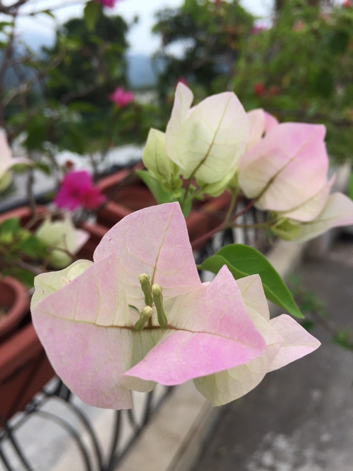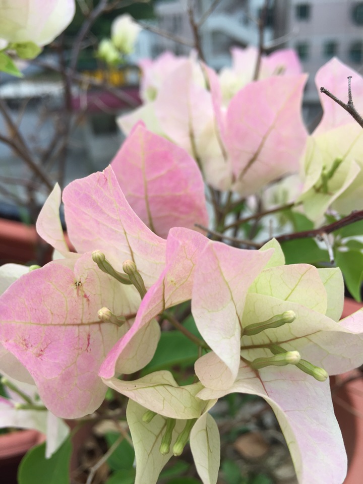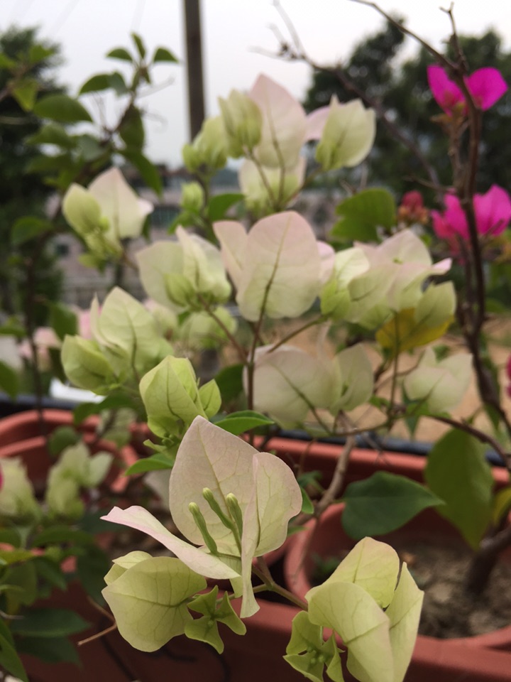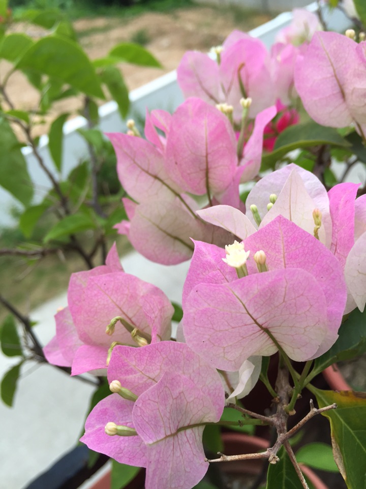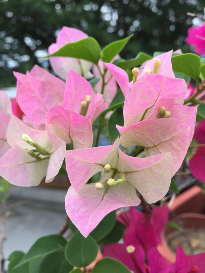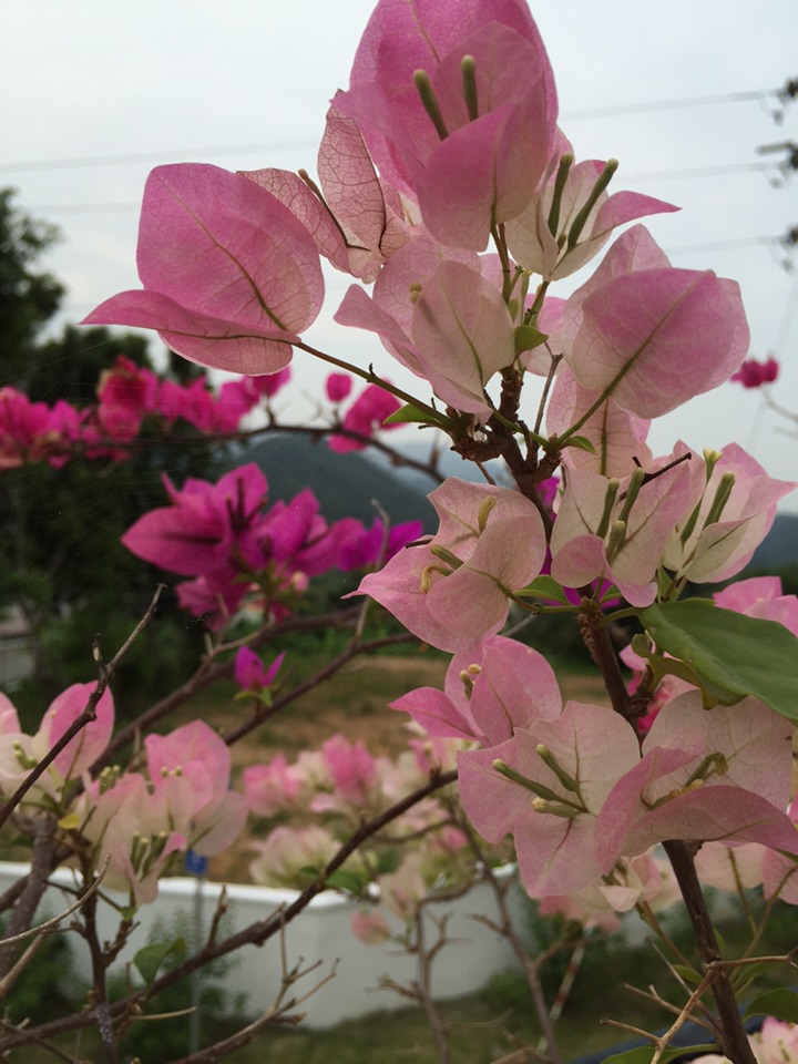 叶子花最常见的是紫红两色,今天游玩时竟遇外看到另一种颜色:粉嫩粉嫩的,特别娇艳。