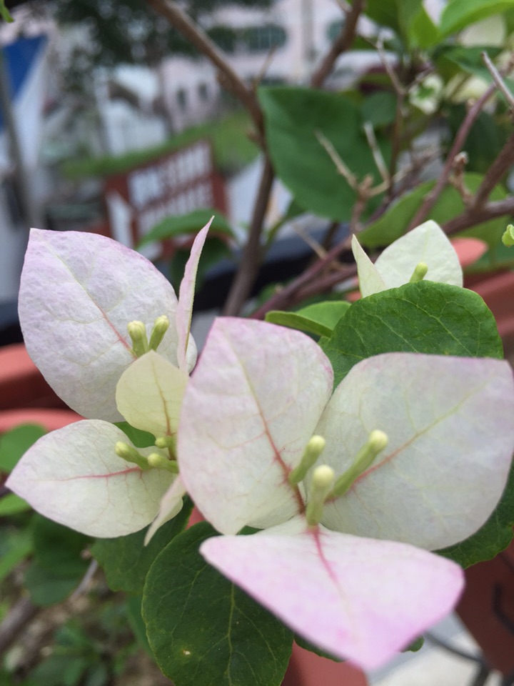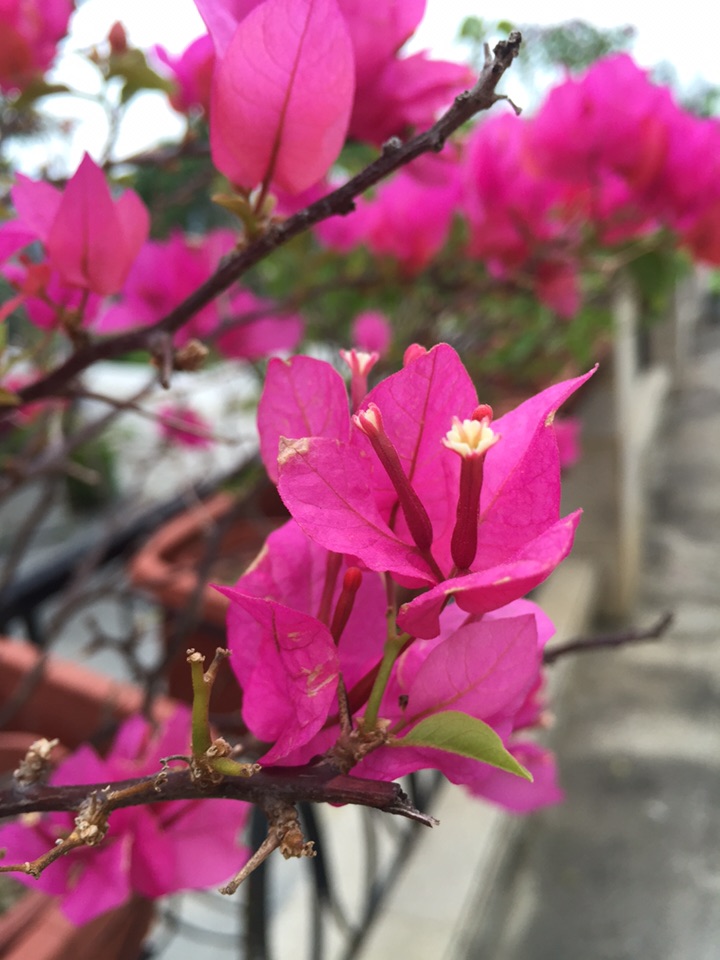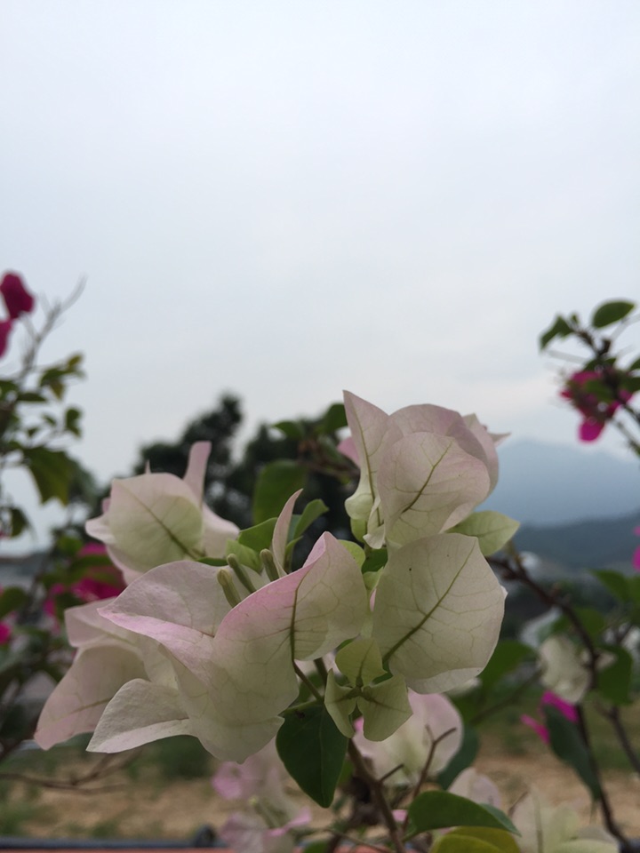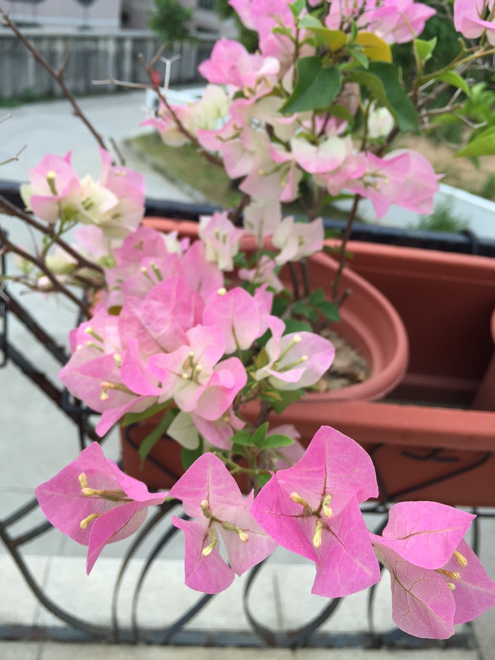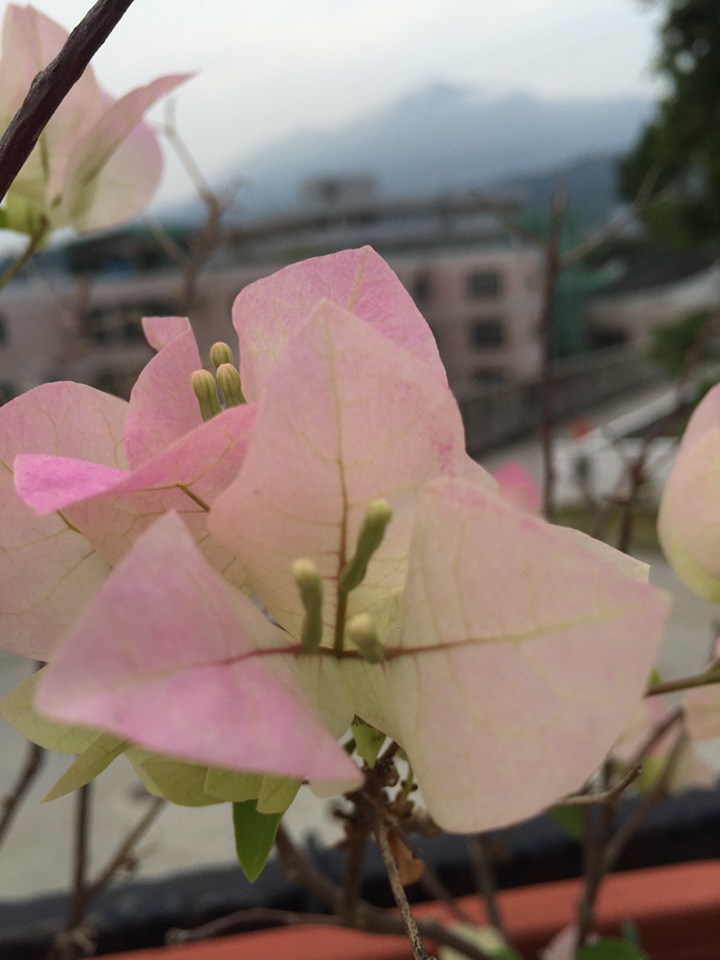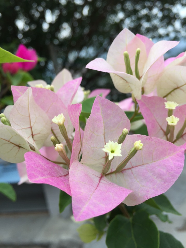 叶子花最常见的是紫红两色,今天游玩时竟遇外看到另一种颜色:粉嫩粉嫩的,特别娇艳。