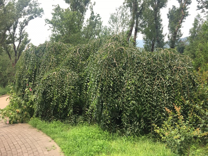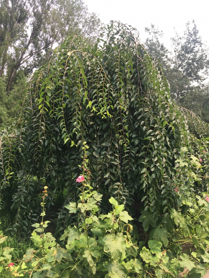 北京植物园进东南门直行过桥后不久,能看到几棵枝条下垂如藤蔓般的树,由于没看到它开花,虽然心中也有几分好奇,但终究还是没怎么关注,最近对叶子的兴趣大增,于是停下脚步对它进行研究好像也就顺理成章了。