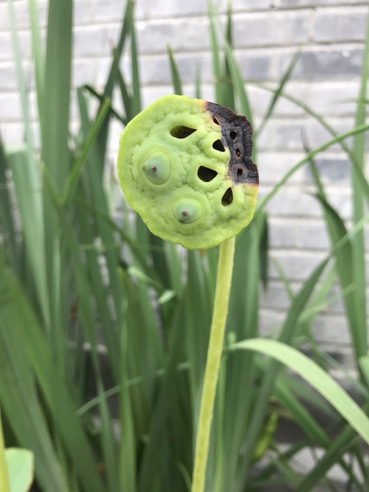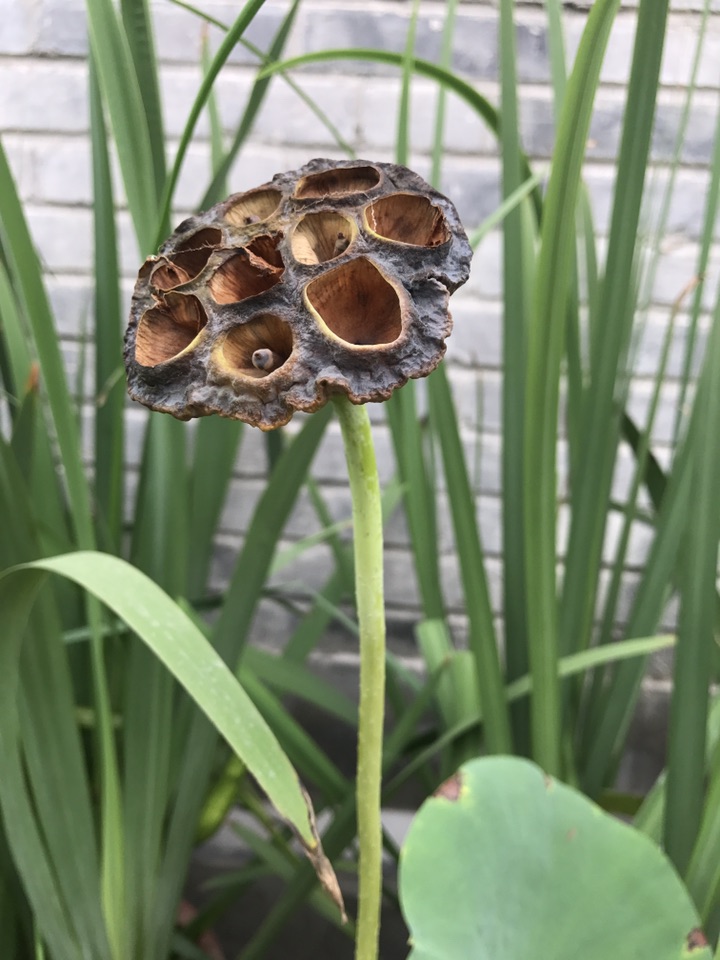 这是长在胡同里的菖蒲与莲蓬。荷花拍的多了,也多是常见的品种,就不想再拍了,不经意间却发现这几朵莲蓬。于是便蹲下拍了起来,正专心拍摄之际,有个爽朗的声音传来:小姑娘摘莲子呢!才发现原来是一个骑着自行车的大叔正途径我的身边,脸不禁一红小声的答到:没,我拍花呢……