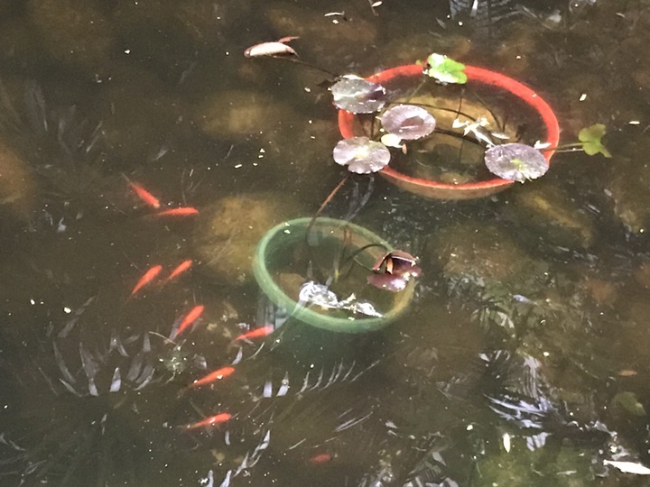 人们能做的有时候是那样的少,但是种种花养养草,改善一下楼下的池塘,还是有希望的。前年引种两株菖蒲,经过一段时间已经枝繁叶茂郁郁葱葱,今年又重了三盆睡莲,一株马蹄莲,在长江里去舀了十几条锦鲤。