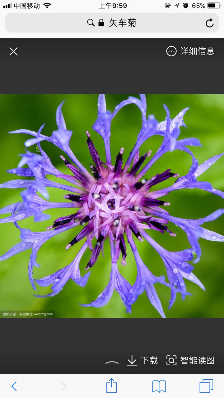 矢车菊(拉丁学名:Centaurea cyanus L.)菊科矢车菊属一年生或二年生草本植物,高可达70厘米,直立,分枝,茎枝灰白色,基生叶,顶端排成伞房花序或圆锥花序。总苞椭圆状,盘花,蓝色、白色、红色或紫色,瘦果椭圆形,花果期2-8月。矢车菊的故乡在欧洲。它原是一种野生花卉,经过人们多年的培育,它的“野”性少了,花变大了,颜色变多了,有紫、蓝、浅红、白色等品种,其中紫、蓝色最为名贵。在德国的山坡、田野、水畔、路边、房前屋后到处都有它。它被德国奉为国花。