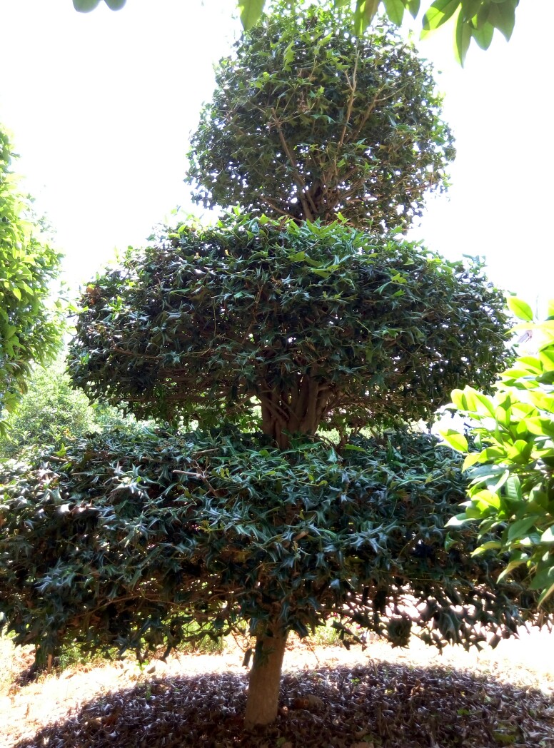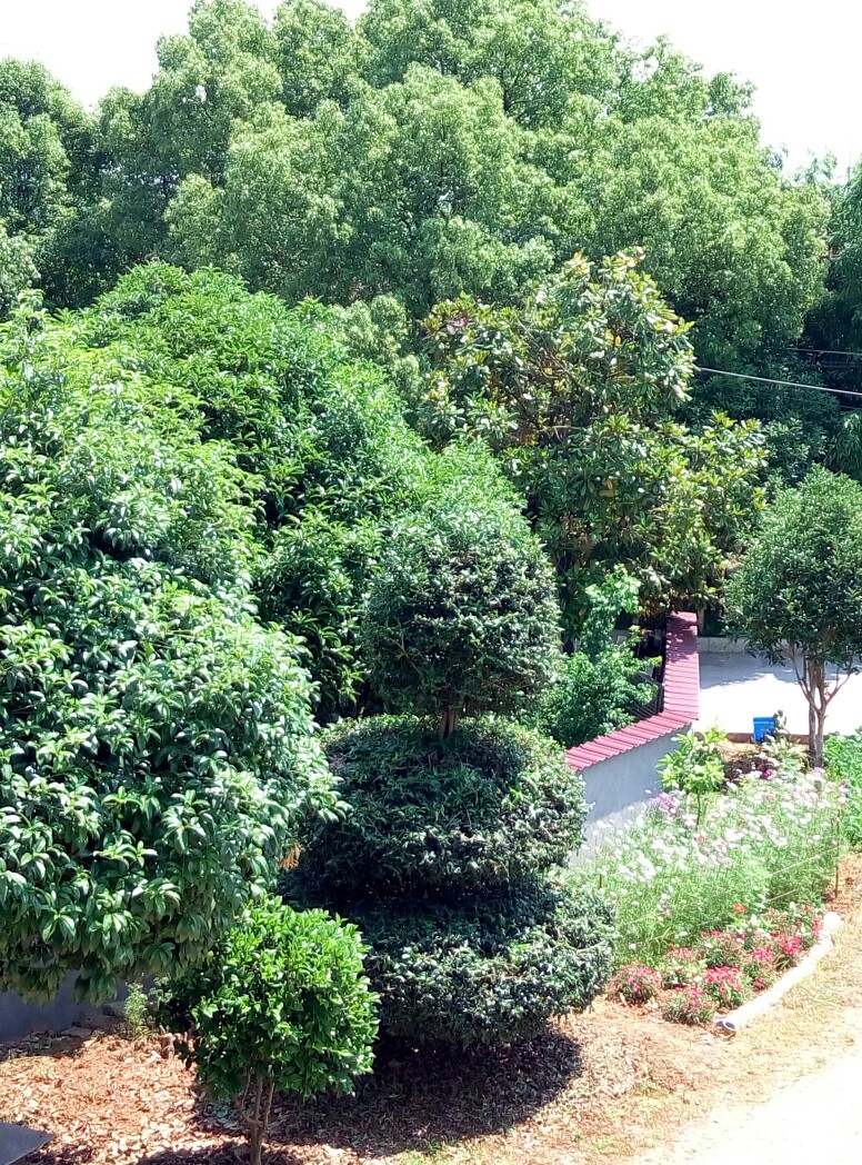 只记得当初我们新房子造好的时候,从山上挖下来带回家的时候,就把你种在了院子里,当时你只是一个光秃秃的树干,经过这几年的精心打理,长出了茂密的枝叶,每年我们都会进行两三次的大修剪,现在的你被我们修剪了三层,每当有人经过家门前的时候,总会听到有人说这树修的还真不错,听得我心里美滋滋的。