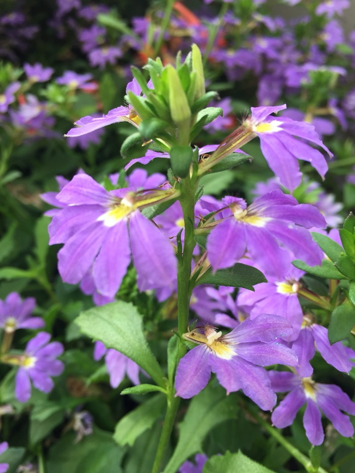 Guelph大学校园里不仅有好几个特色花园 而且校园里到处都有花开 很是漂亮 这个蓝花扇是种在一个室内花园里的 长得非常健康、正值花季