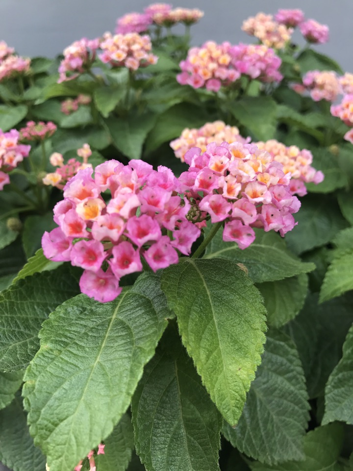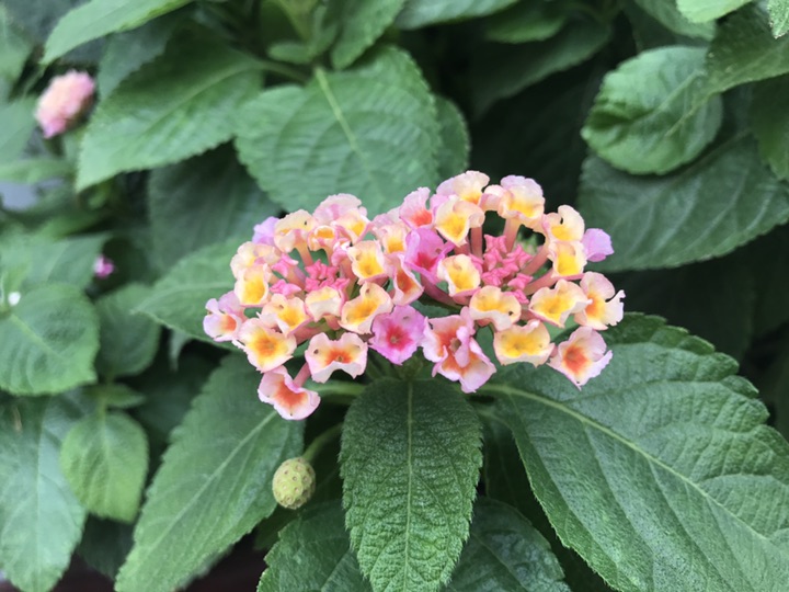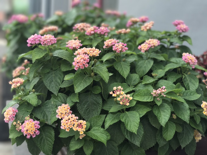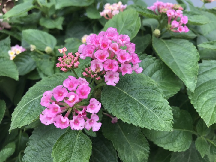 夹杂在这簇簇绣球花之间的马缨丹略显的就有点秀气了,一整条一整条的胡同满是一簇簇或大或小的同样颜色丰富的花花,撑一把油纸伞,换一套民国装,就这么随着花铺就的小路,静静的漫步而行,俨然一副烟雨江南的味道……